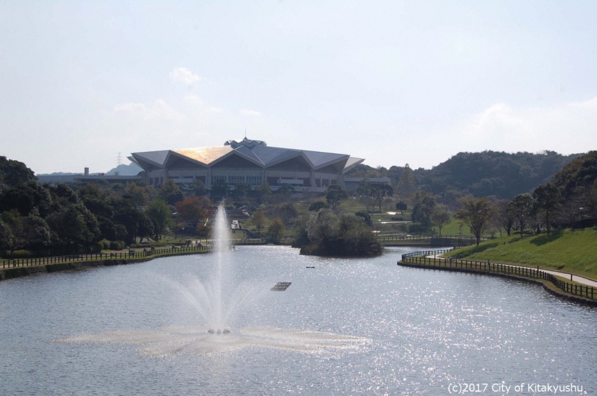 「福岡県営中央公園」は明治100年記念事業として、1967年から本格的に整備された総合公園です。北九州市のほぼ中央に位置し、小倉北区、戸畑区、八幡東区にまたがっています。面積は約92ヘクタールと広大です。