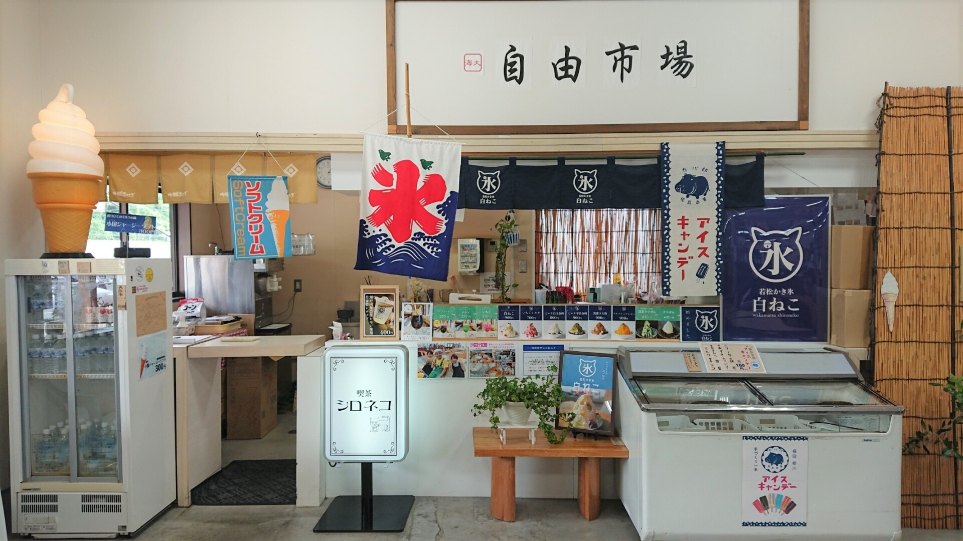 若松区にある大型産直市場「海と大地」の中にあるお店で、かき氷をはじめ、ソフトクリームやアイスキャンディーといった『ひんやりスイーツ』が人気を集めています。