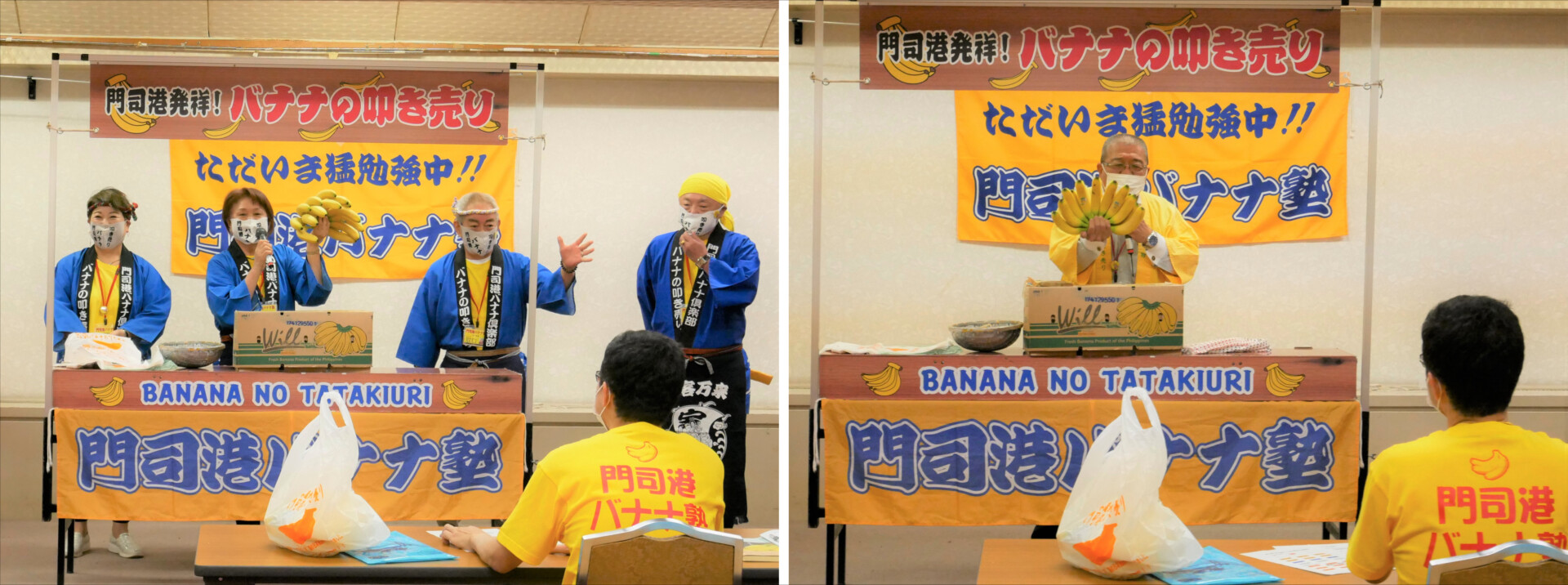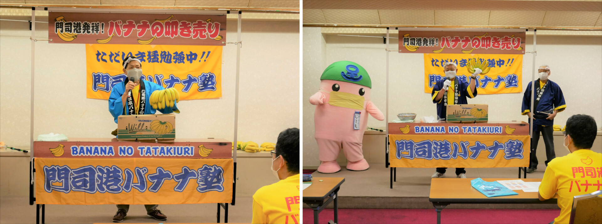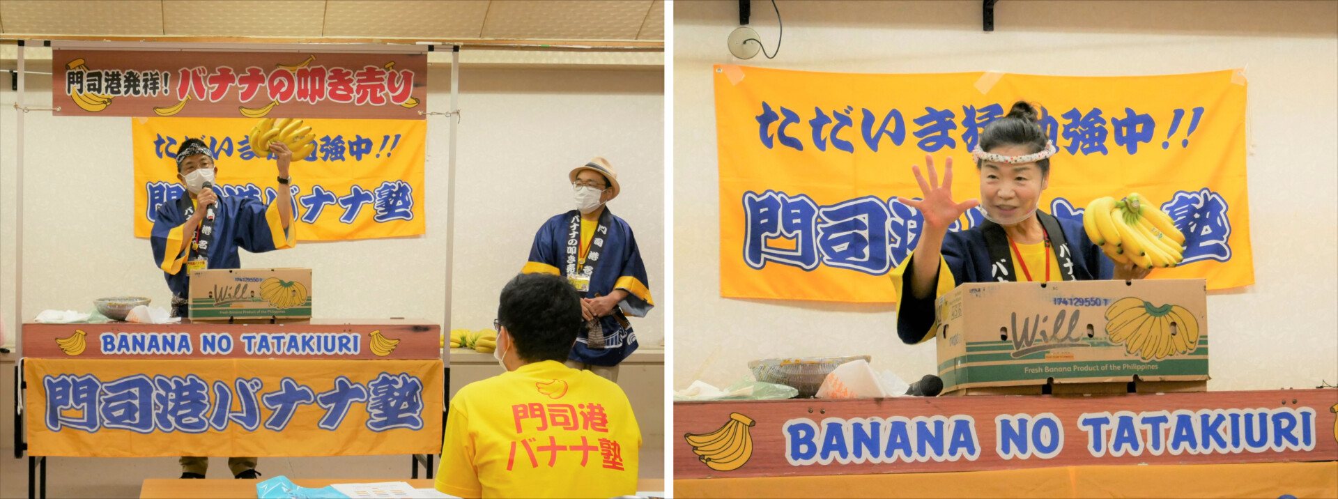 「門司港バナナ塾」は、門司港発祥とされ、日本遺産にも認定された「バナナの叩き売り」の保存継承と後継者育成を目的としたもので、毎年開催されています。