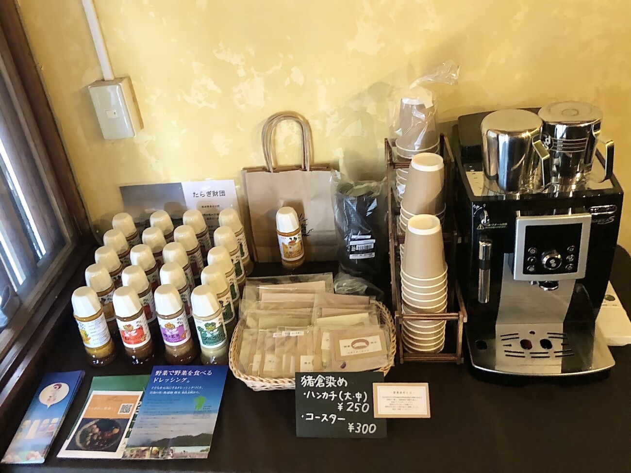 1階には醤油やかつお節などの食材を販売する物販コーナーも
