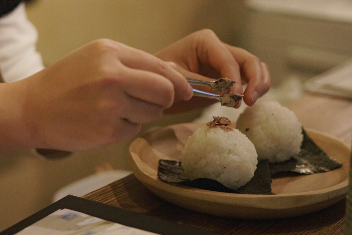 おにぎりのお米の品種は8種類ほどを食べ比べて決められています。