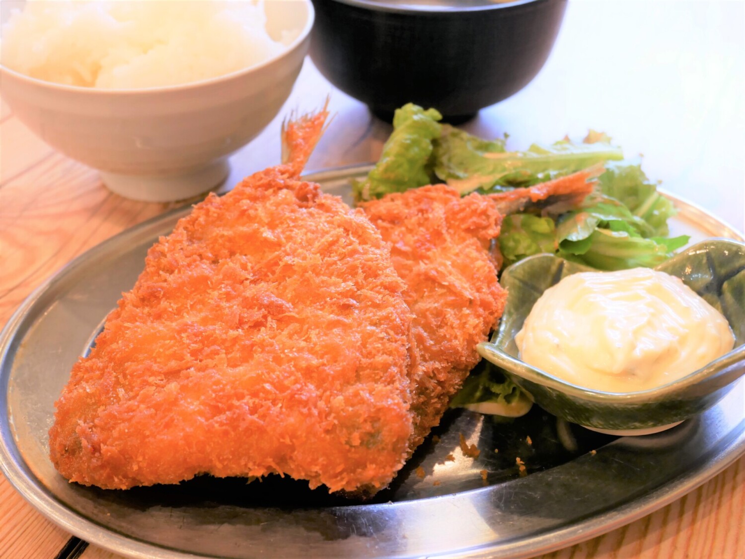 アジフライへの注目が高まっている昨今、肉厚のアジフライ2尾を堪能できるアジフライ定食も見逃せないですね。
