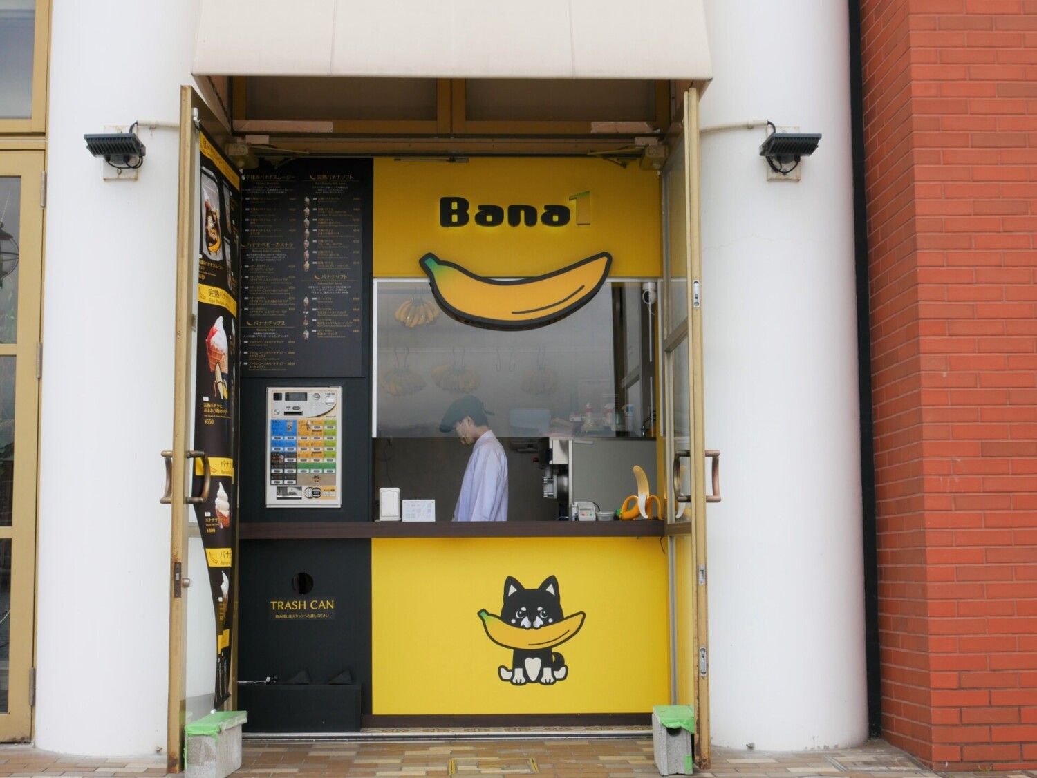 門司港レトロ地区にある「海峡プラザ」の1階に、6月14日、食べ歩きバナナスイーツ専門店「Bana1(バナワン)」がオープンしました。バナナをくわえたかわいらしい犬のキャラクターが目印です。