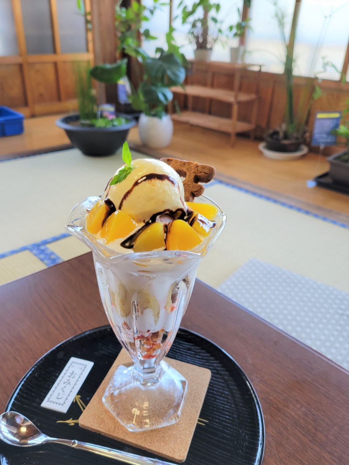 お店オススメの「神社パフェ」は、鳥居の形をした手作りクッキーとおみくじ付き。バニラアイスとストロベリーアイスが楽しめます。パフェに飾り付けられている桃は『魔除け』に、鳥居クッキーに入っているシナモンは『邪気払い」になるといわれているそうです。 パスタやカレー、ピザといったランチメニューも用意。ドリンク類と特製ポークカレーはテイクアウトもOKとのことです。