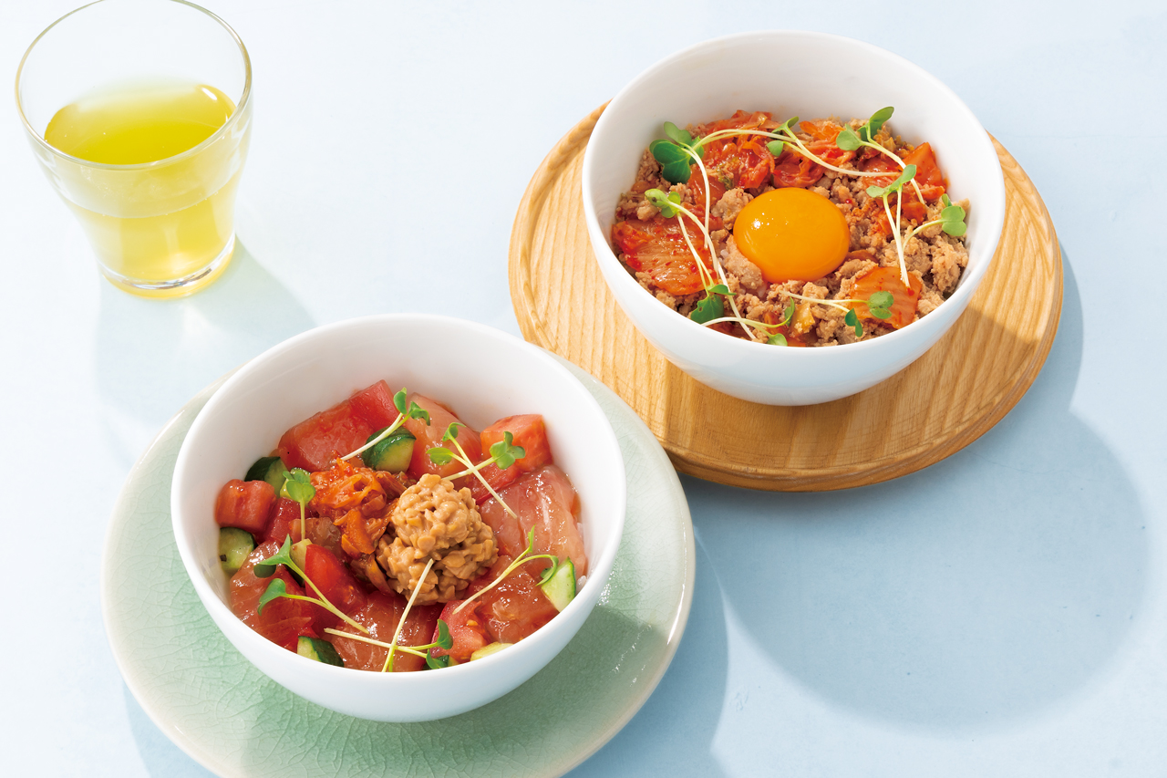 季節限定どんぶり「天然鮪のキムチ納豆どんぶり」「鶏そぼろキムチどんぶり」