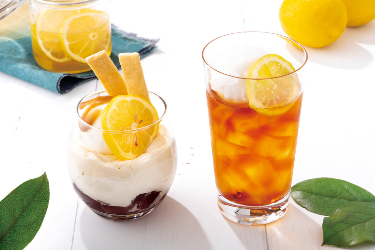 スイーツ・ドリンク「はちみつレモンティーグラス」「はちみつレモンティーフロート」