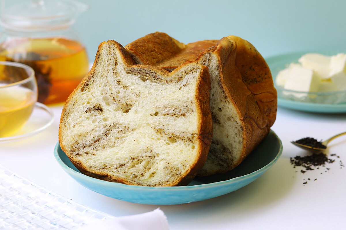 アールグレイの茶葉とホワイトチョコチャンクを練りこんだ生地とプレーン生地、そしてレアチーズ風味のクリームを織り込んで、茶トラ柄に仕上げられています。かわいらしいだけでなく、スライスした途端、柑橘系を思わせるアールグレイのさわやかな香りが口の中でふわっと香り、食欲をそそられますよ。