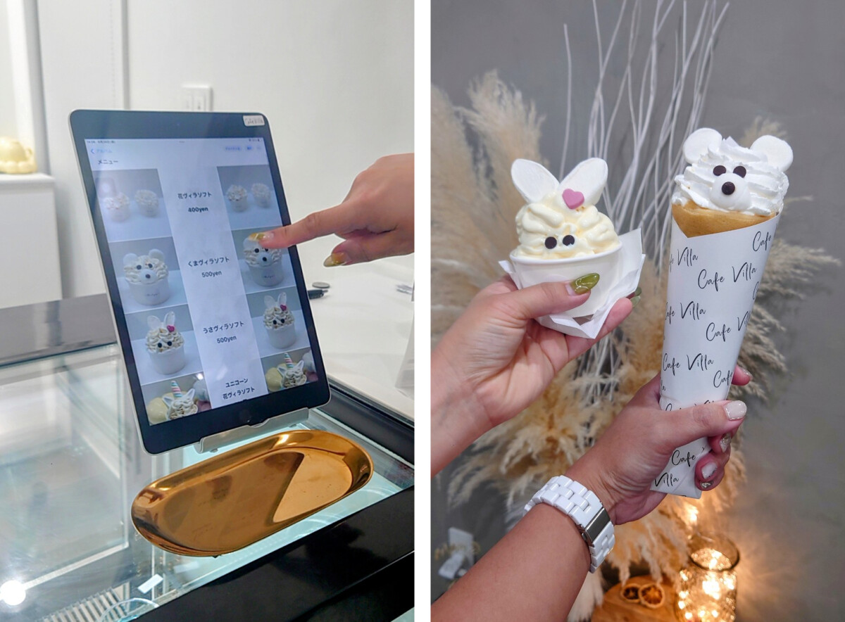 メニューが紙ではなくタブレットなのも斬新。これ、全てのメニューが写真つきで分かりやすいんですけど、どれもかわいすぎて美味しそうで、優柔不断な筆者には選びきれないという難点があります(笑)