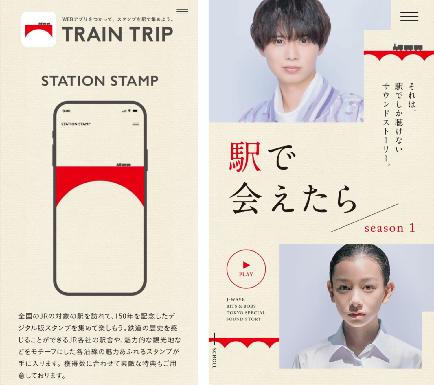2022年10月14日に鉄道開業150周年を迎えることを受け、JRグループ「鉄道開業150年」キャンペーンが開催中。全国のJRの対象駅で、デジタル版スタンプを集める「STATION STAMP」と、1駅1話完結の恋愛ストーリー「サウンドストーリー『駅で会えたら』」を配信中です。