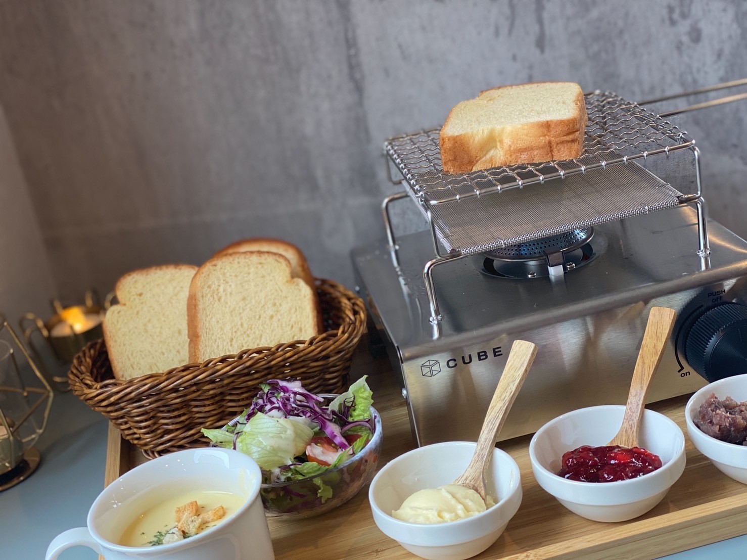 多彩なメニューが揃う中、早くも話題を集めているのが、自分でパンや生麩(お団子)を焼いて仕上げる『体験型』メニューです。
