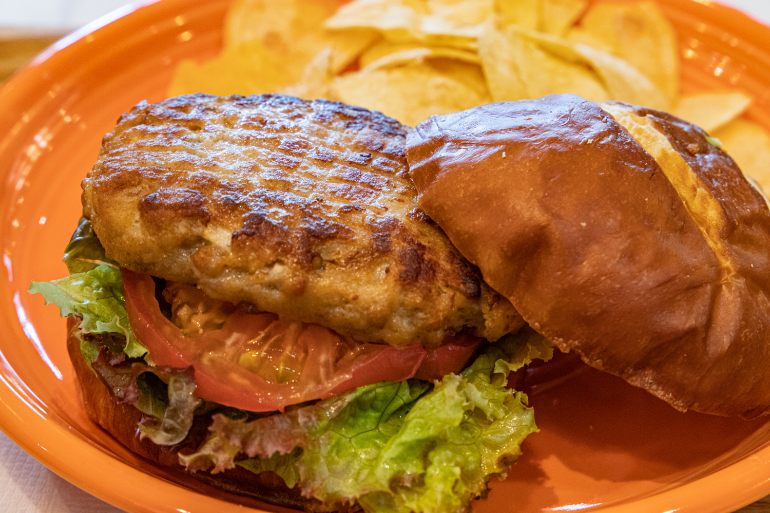 メニューを見てみると『キッチン』というだけあって食事のメニューが豊富。「キッチングルメバーガー」(写真、850円)や「ロコモコ」(890円)など、ピクニック気分を味わえるメニューや、老若男女に愛されるカレーには子どもサイズも準備されていて、幅広い年代で利用しやすそうです。その他にもパスタやピザ、スイーツなど20種類近くの食事が楽しめます。