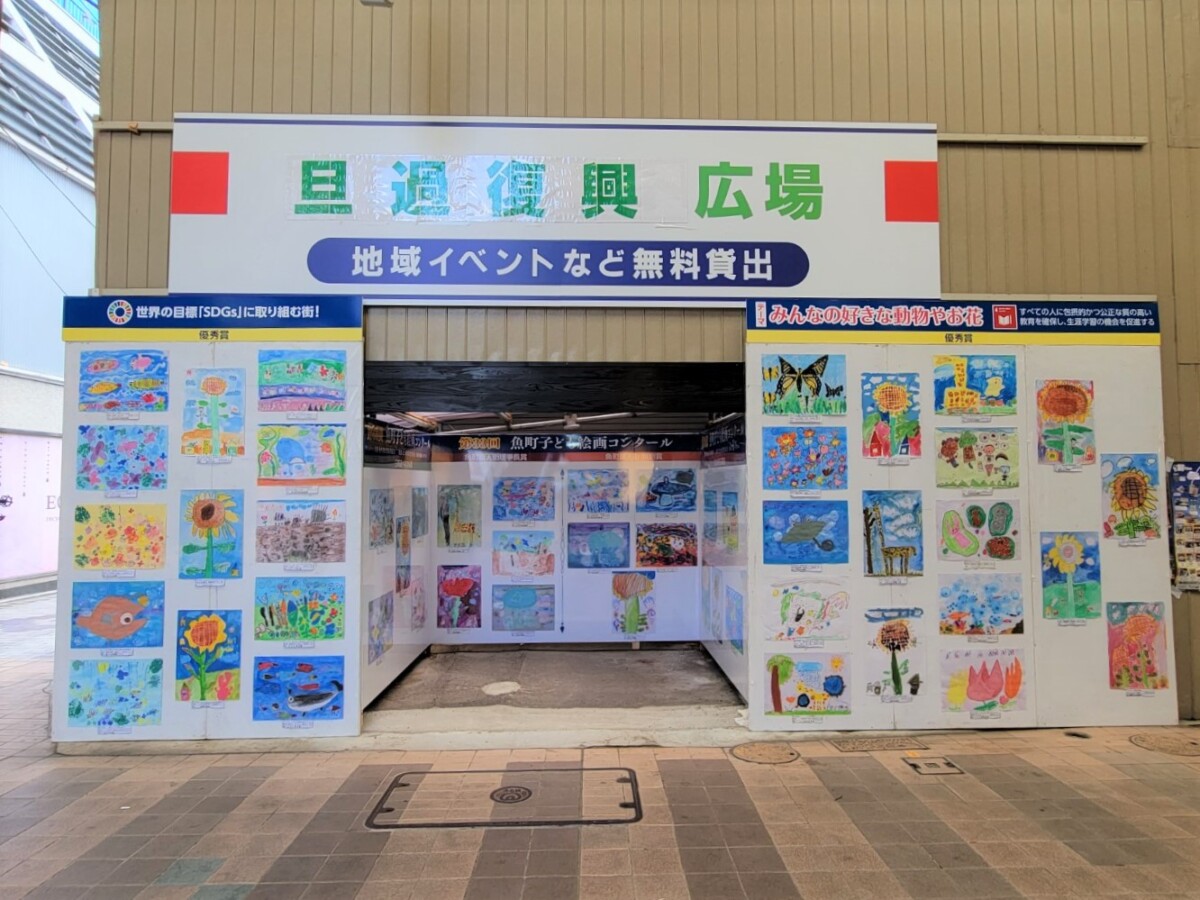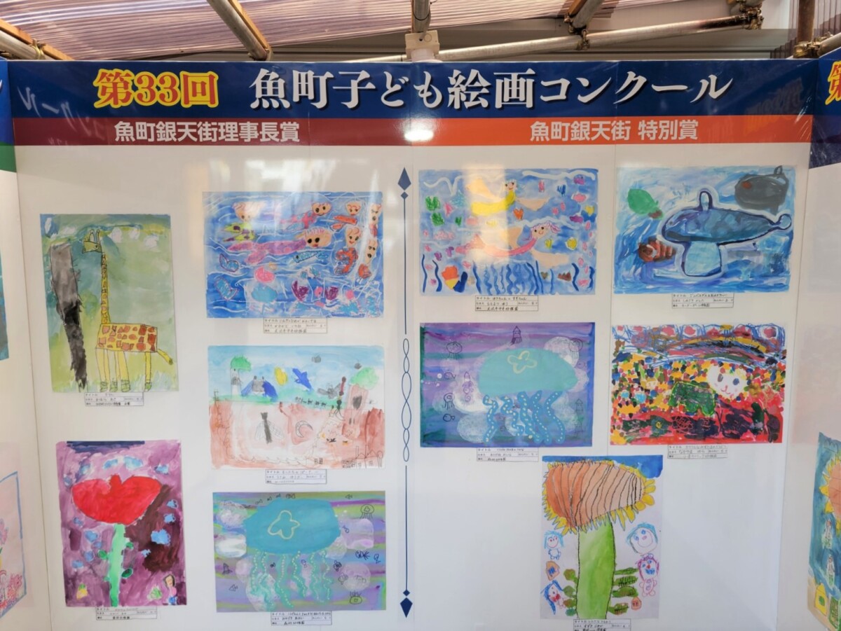 魚町銀天街内の「旦過復興広場」で、「第33回 魚町子ども絵画コンクール」(主催/魚町商店街振興組合)の作品が8月7日まで展示されています。