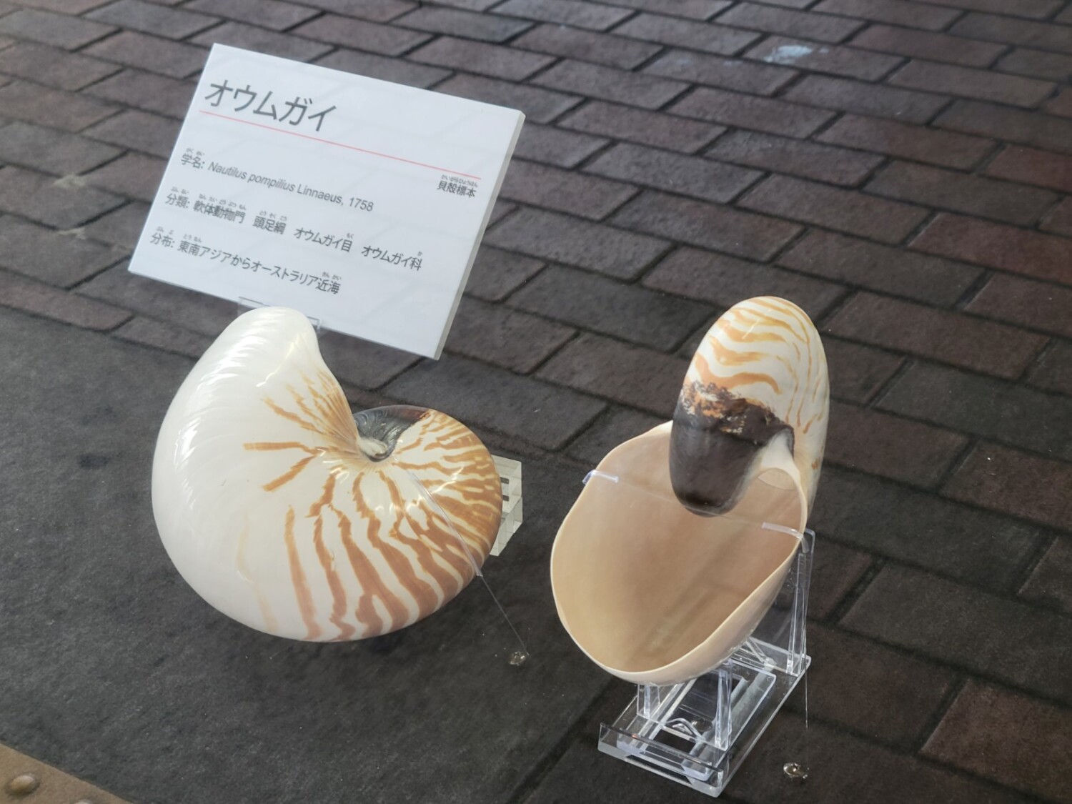 二枚貝としては世界最大の「オオシャコガイ」、カメオの原料といわれている「マンボウガイ」など、さまざまな貝類14点が展示されています。