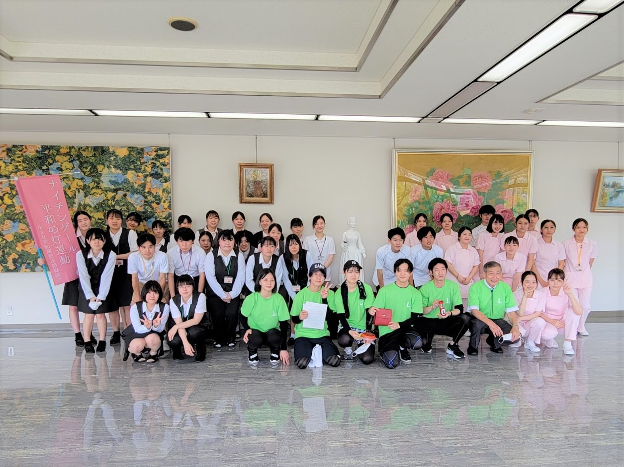 最終日の8月15日は、原爆資料館を見学後、平和公園内の「長崎市原子爆弾無縁死没者追悼祈念堂」のろうそくへ「ナイチンゲール平和の灯」を献灯し、今年の活動を終える予定とのことです。