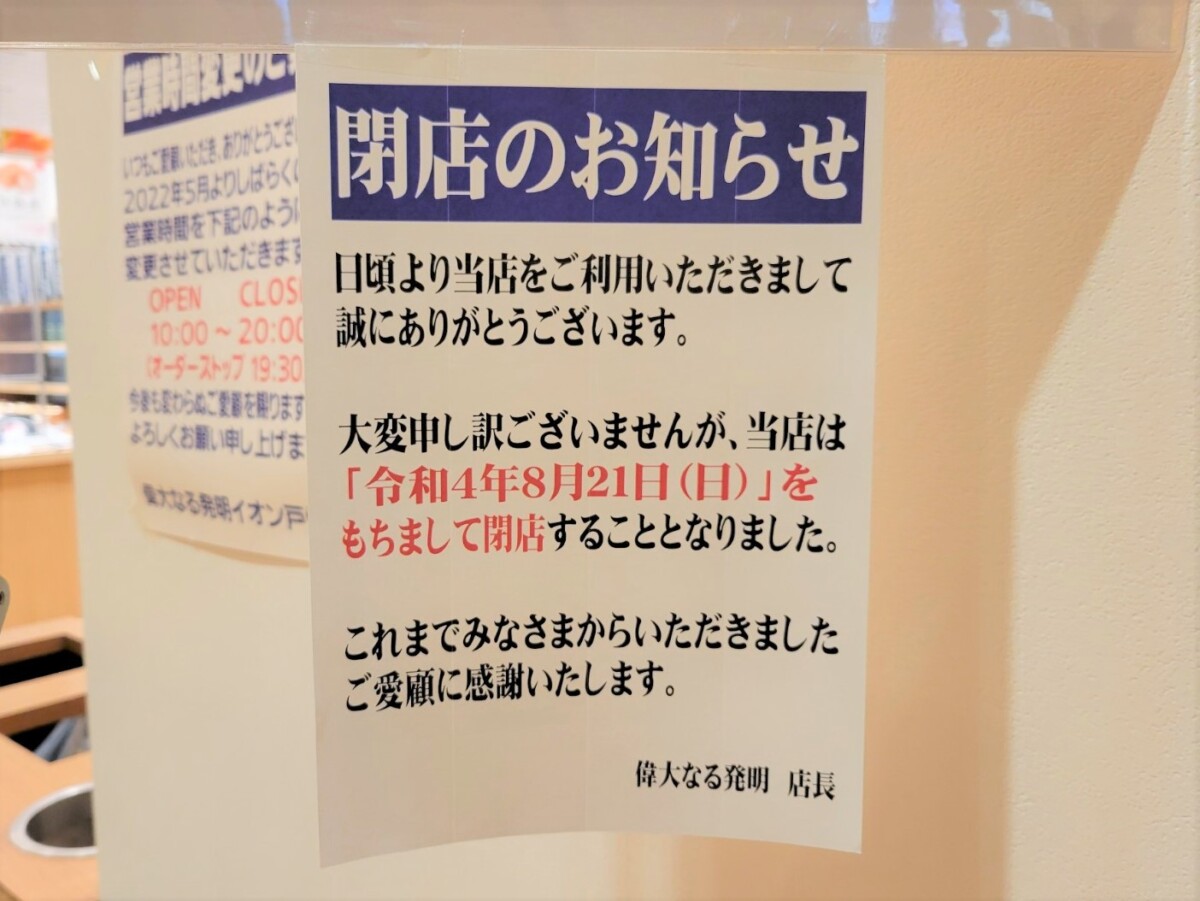 (アイキャッチ画像:店舗前に掲示された閉店のお知らせ)
