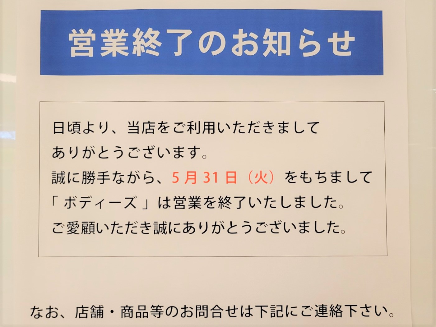 場所は5月31日まで女性専用フィットネススタジオ「ボディーズ」があったところ。「くまざわ書店」と「洋麺屋 五右衛門」の間のスペースです。