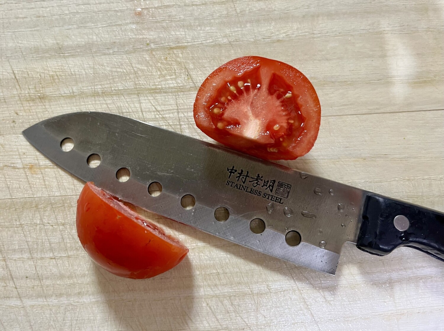 おうちに帰ってさっそくトマトを切ってみると、トマトに包丁がすっと入り、くずれることなくきれいに切ることができました。