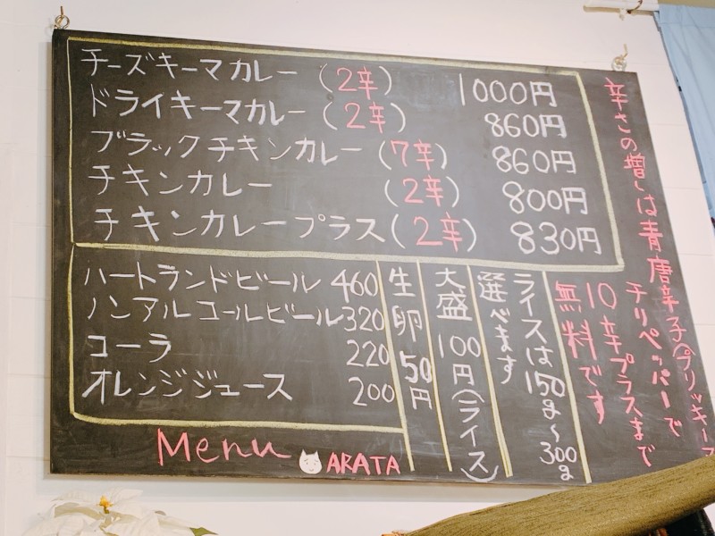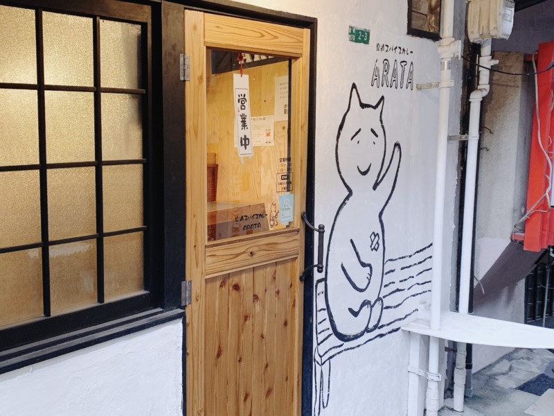 この通りに、入り口にネコが描かれている「旦過スパイスカレーARATA」があります。