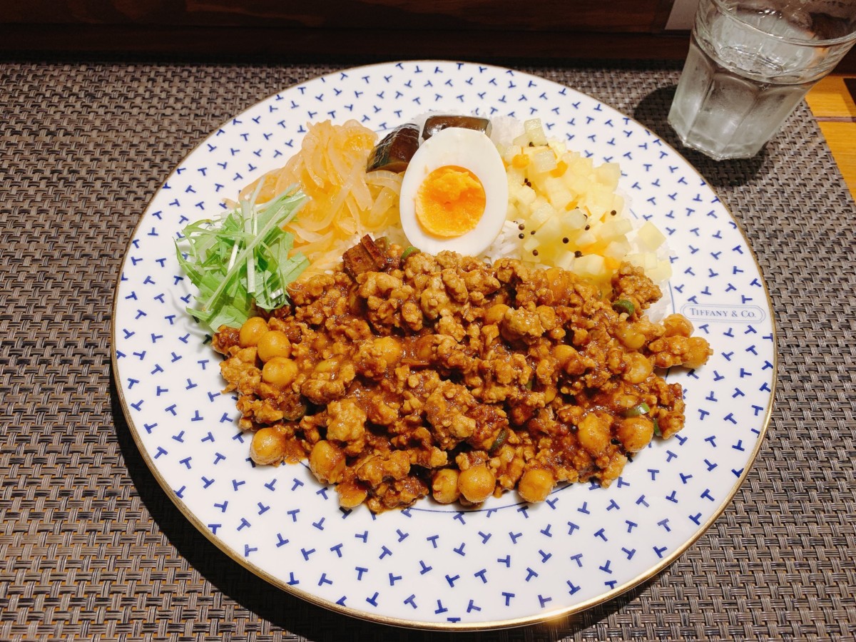 ティファニーのお皿で登場したドライキーマカレー。頭に浮かんだのは「ティファニーで昼食を」