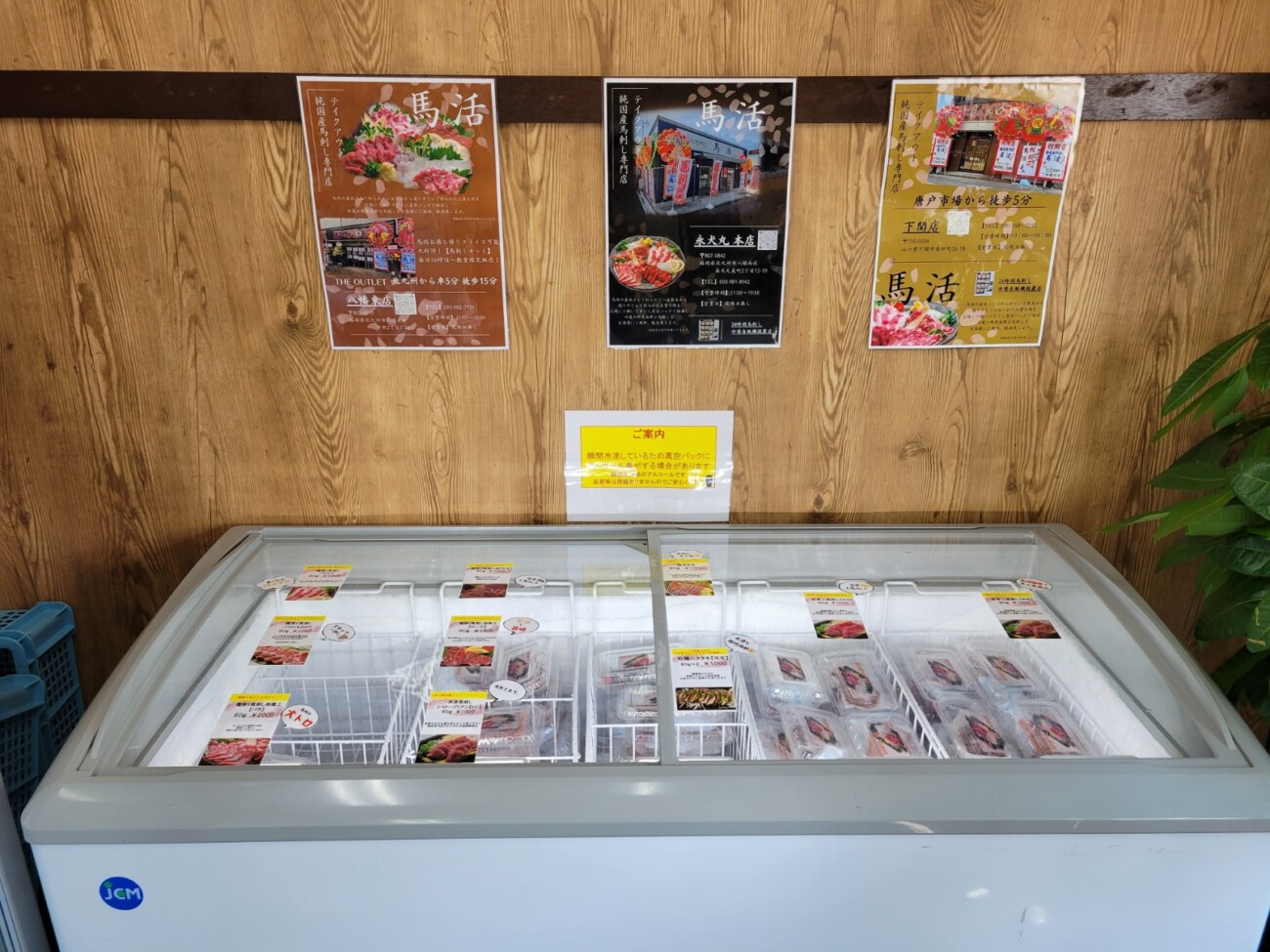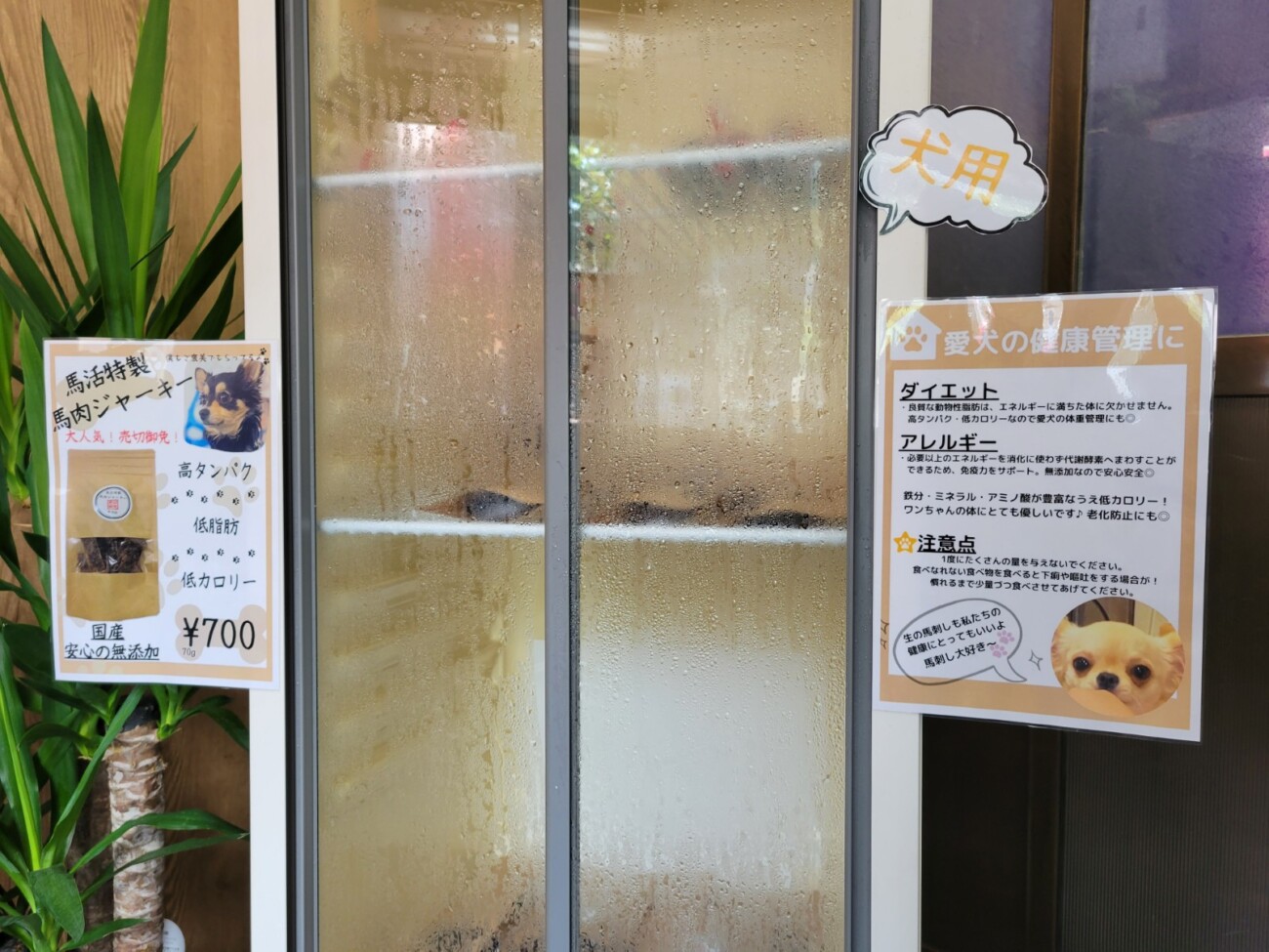また、別の冷凍庫では、犬用の商品として馬活特製「馬肉ジャーキー」が販売されていました。
