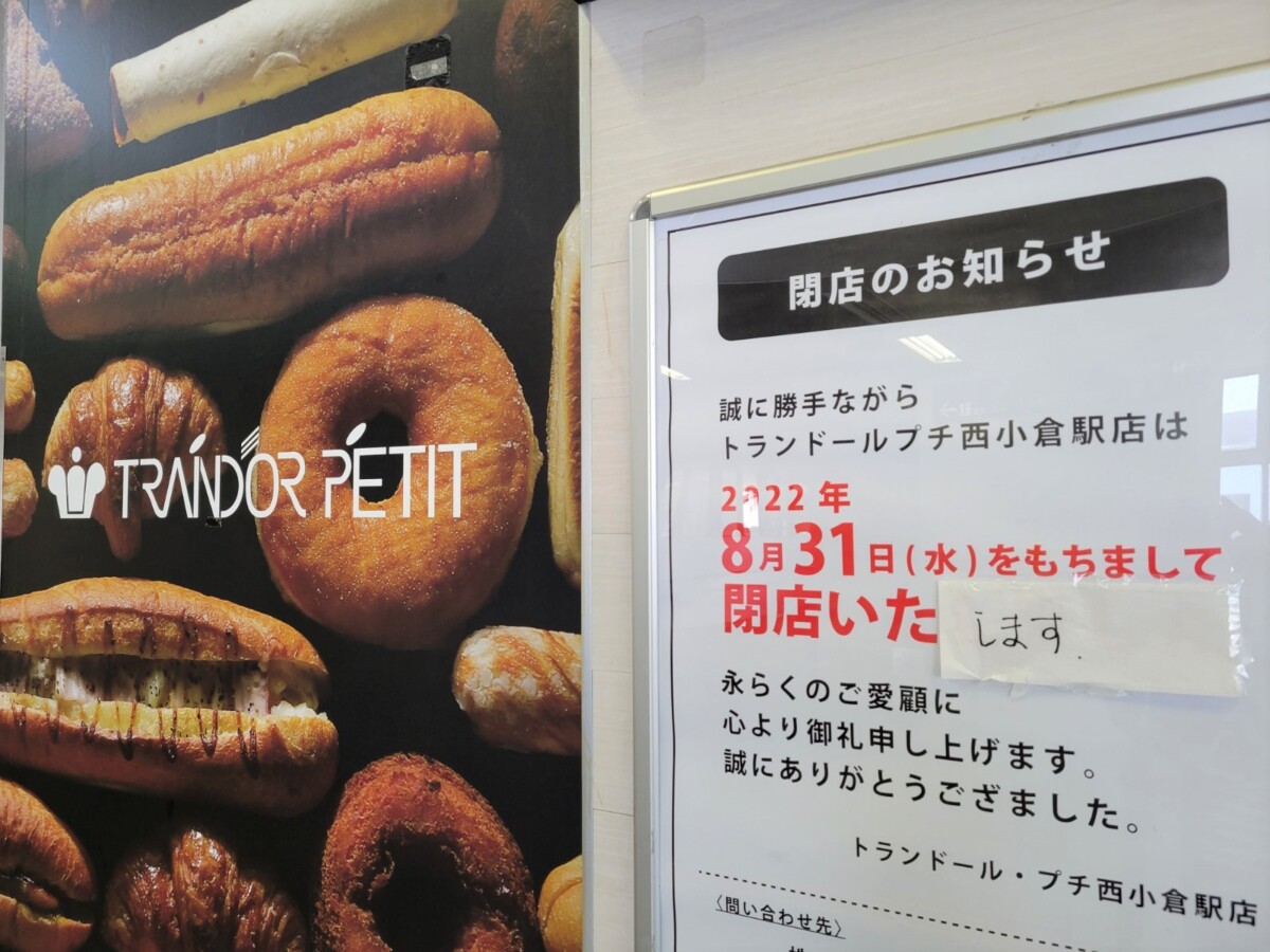 JR西小倉駅の改札を入ったところにあるパン屋さん「トランドールプチ西小倉駅店」が、8月31日で閉店します。