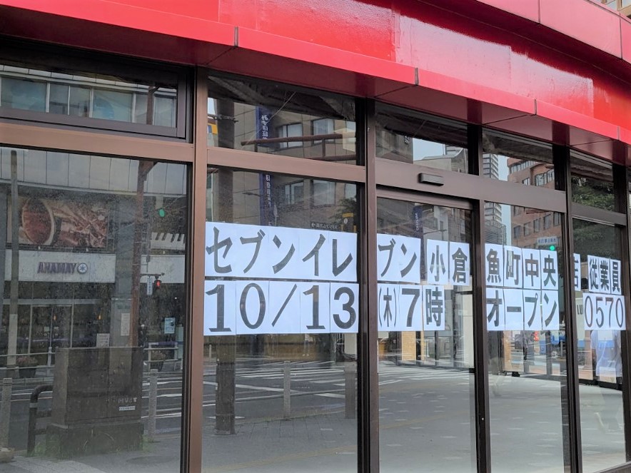 小倉北区の「魚町」交差点すぐそばに、10月13日、「セブン-イレブン小倉魚町中央店」がオープンするようです。