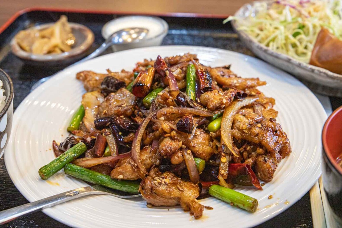 メニューを見ると定食の数はなんと25種類。「麻婆豆腐」「エビチリ」「酢豚」といった馴染み深いものから、「ラム肉のねぎ炒め」「細切り豚肉の甘辛炒め」などあまり目にしないメニューまで、バラエティーに富んでいてどれにするか迷ってしまいます。