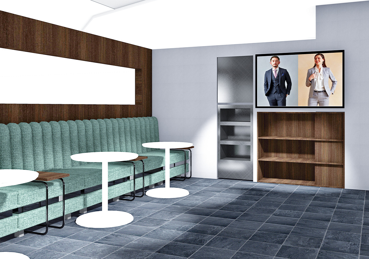 今回オープンするセントシティ北九州店には、個室空間「プライベートフィッティングルーム」に加え、フリーWi-Fi・フリードリンク付きの「ウェイティング ・ カフェ」を併設。テレビ鑑賞などをしながらゆっくりと待つことができるといいます。