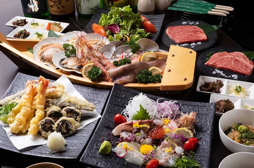 このコースなら、お店自慢の「浜焼き」や「焼きしゃぶ」などを一度に味わうことができますよ。