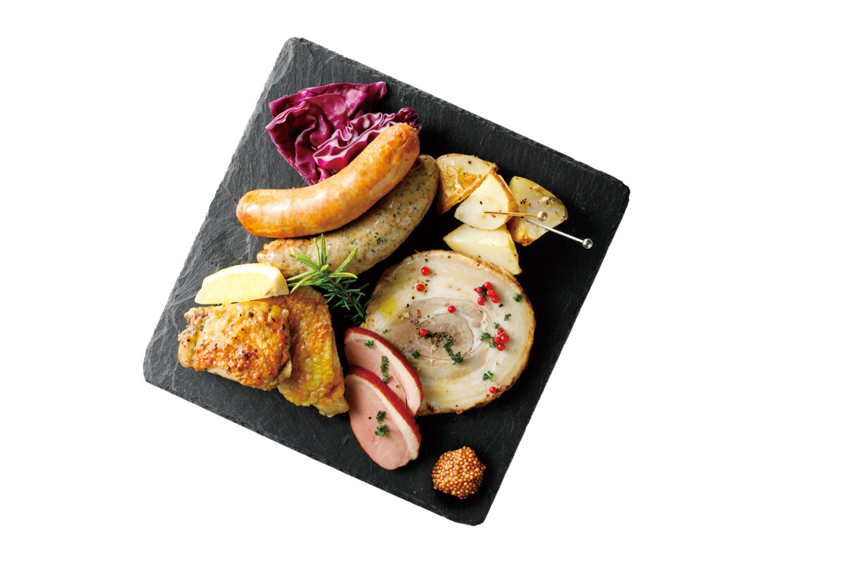 東京のイタリアンレストラン「ビゴーテ」の「ビゴーテの肉盛りセット」(2160円)は、ワインにピッタリな肉料理の盛り合わせ。バジルチキン・ガーリックチキン・合鴨スモーク・ポルケッタ・サルシッチャ2種・ポテトの7種盛りで、催事で実演販売されている商品がすべてセットになっています。