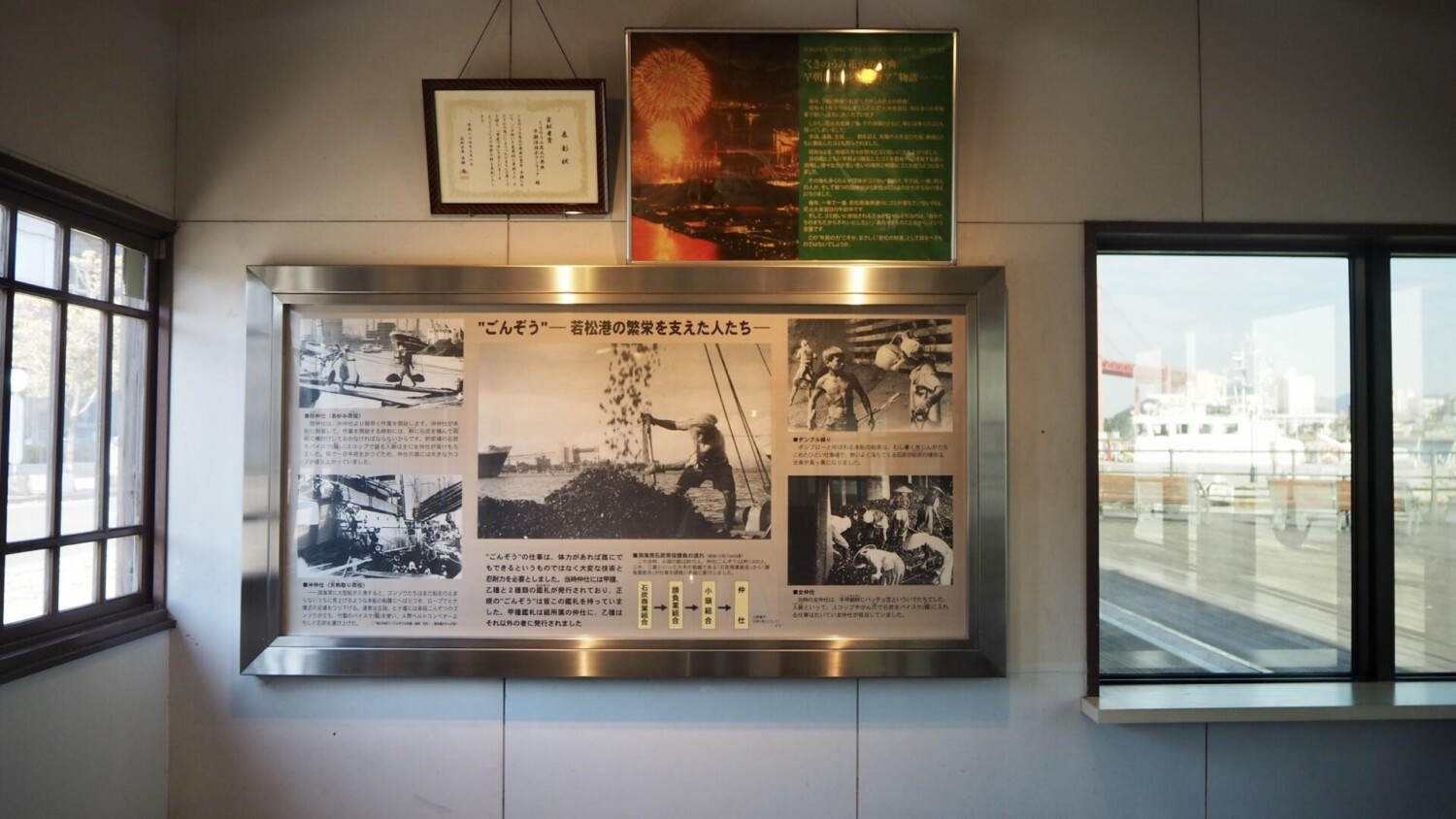 現在では跡地に「旧ごんぞう小屋」が建てられています。中にはベンチがあり、小屋の中から洞海湾を眺めることができます。洞海湾の景色を楽しんだり、若松の歴史について知りたい人に立ち寄ってもらいたいスポットです。