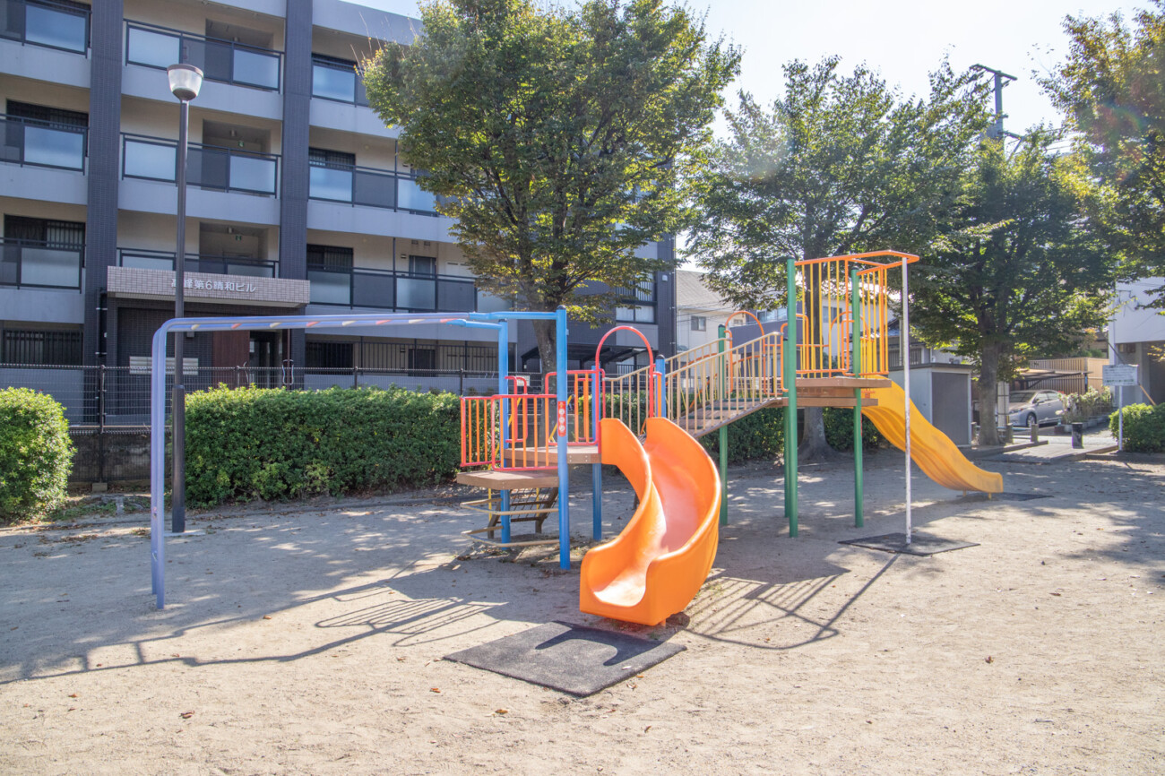 「小倉高峰パンダ公園」があるのは、板櫃中学校のそば。住宅街の中にあり、周りをマンションが囲むこじんまりとした公園です。