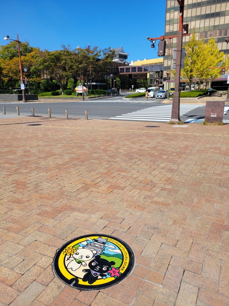 勝山公園の緑や花をイメージしているのかどうか定かではありませんが、マンホールは勝山公園内に向いて設置されています。