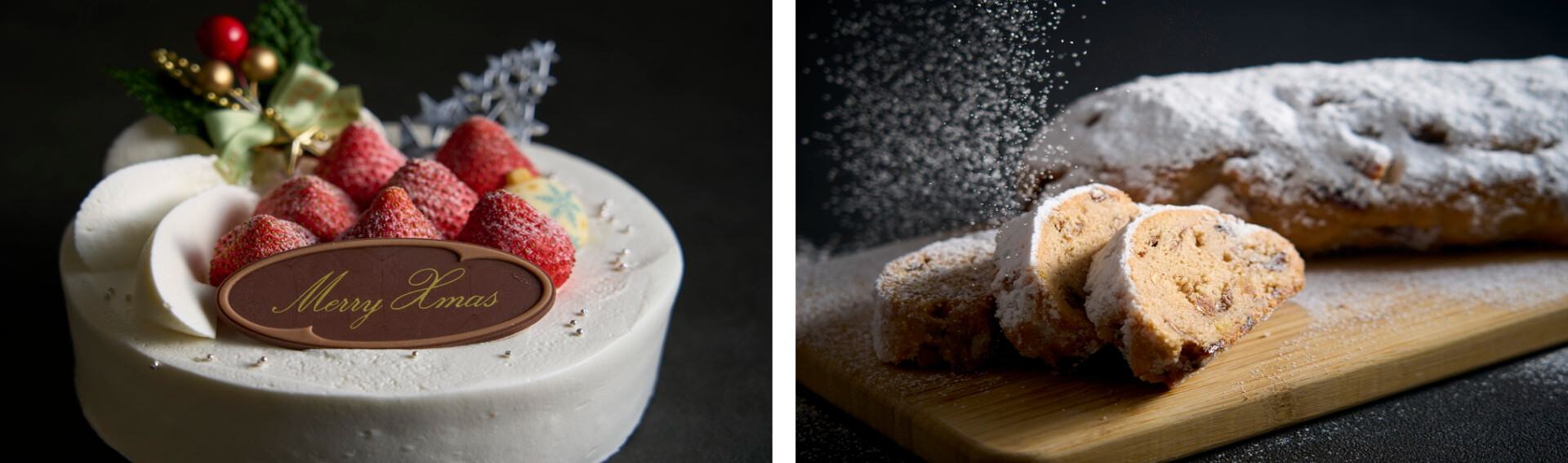 そのほか、しっとりとしたスポンジと優しい甘さのクリームを重ねた「クリスマスデコレーションケーキ」(4500円、直径15cm)、ラム酒にじっくりと漬け込んだドライフルーツとナッツをふんだんに練り込み、多彩な食感と味わいを楽しめるホテルオリジナル「シュトーレン」(3000円、約22cm)が用意されています。