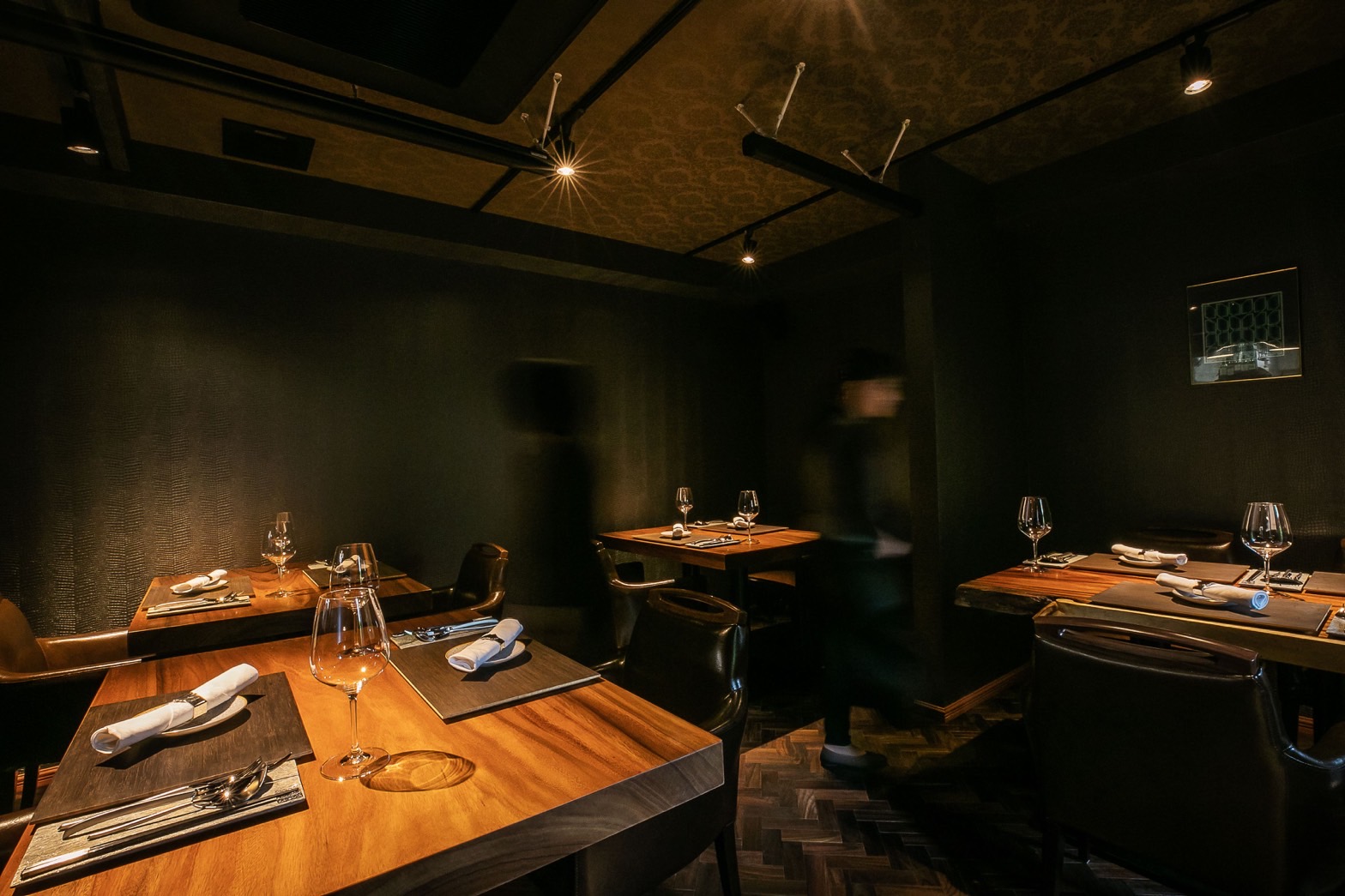 小倉駅から徒歩7分、北九州モノレール「平和通」駅からだと徒歩1分。大きなガラス張りのビルの5階にある「MARYCO GRAND CRU」は、イタリアンレストランとオーセンティックバーを備えたラグジュアリーな雰囲気が漂うお店です。テーブル席・カウンター席に加え、大切な人との会話がゆっくりと楽しめる個室もあります。