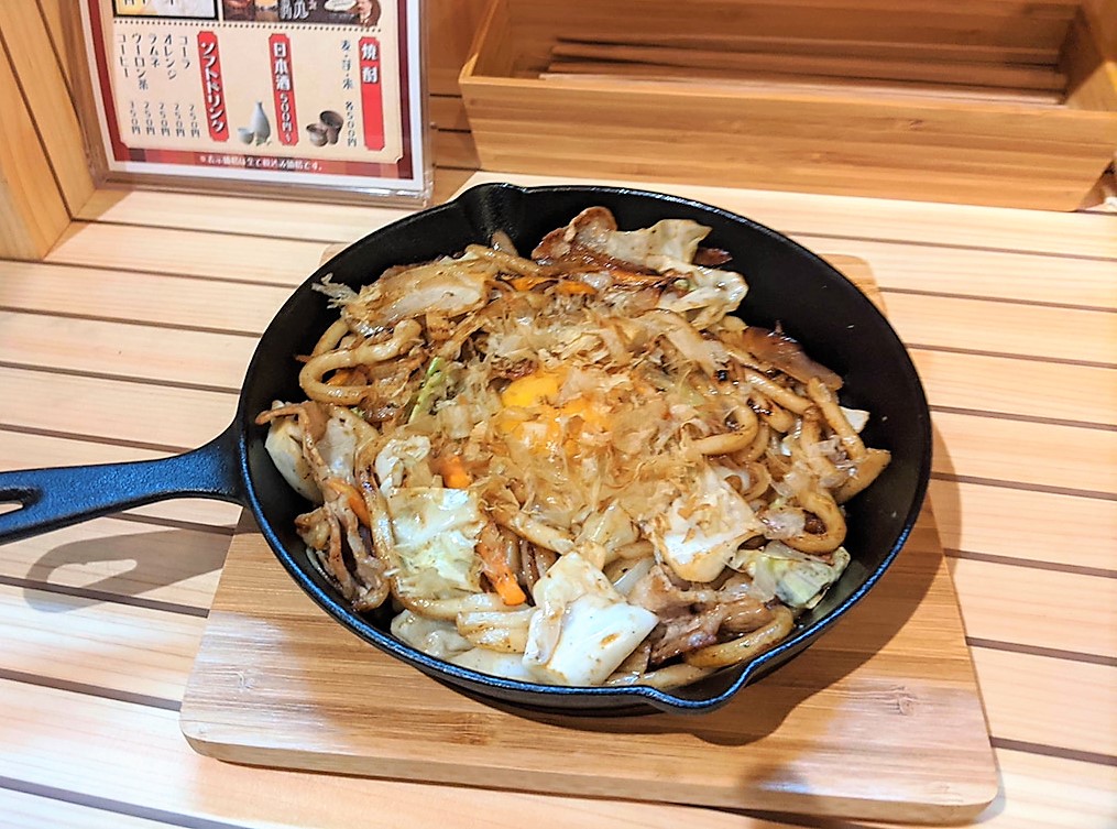 焼うどんに半熟の目玉焼きが乗った「天窓」