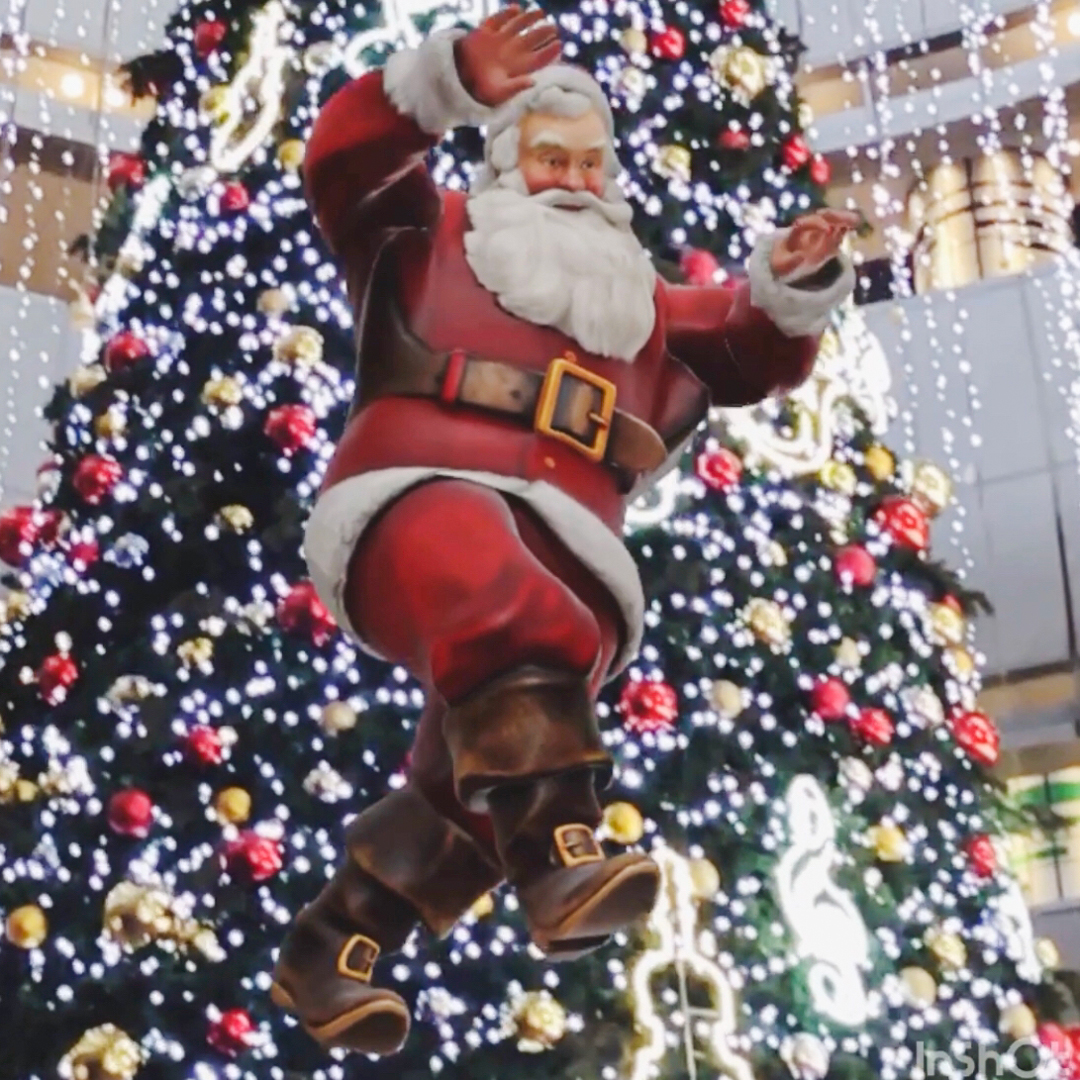 1階エナジーコートのツリーと踊るサンタ