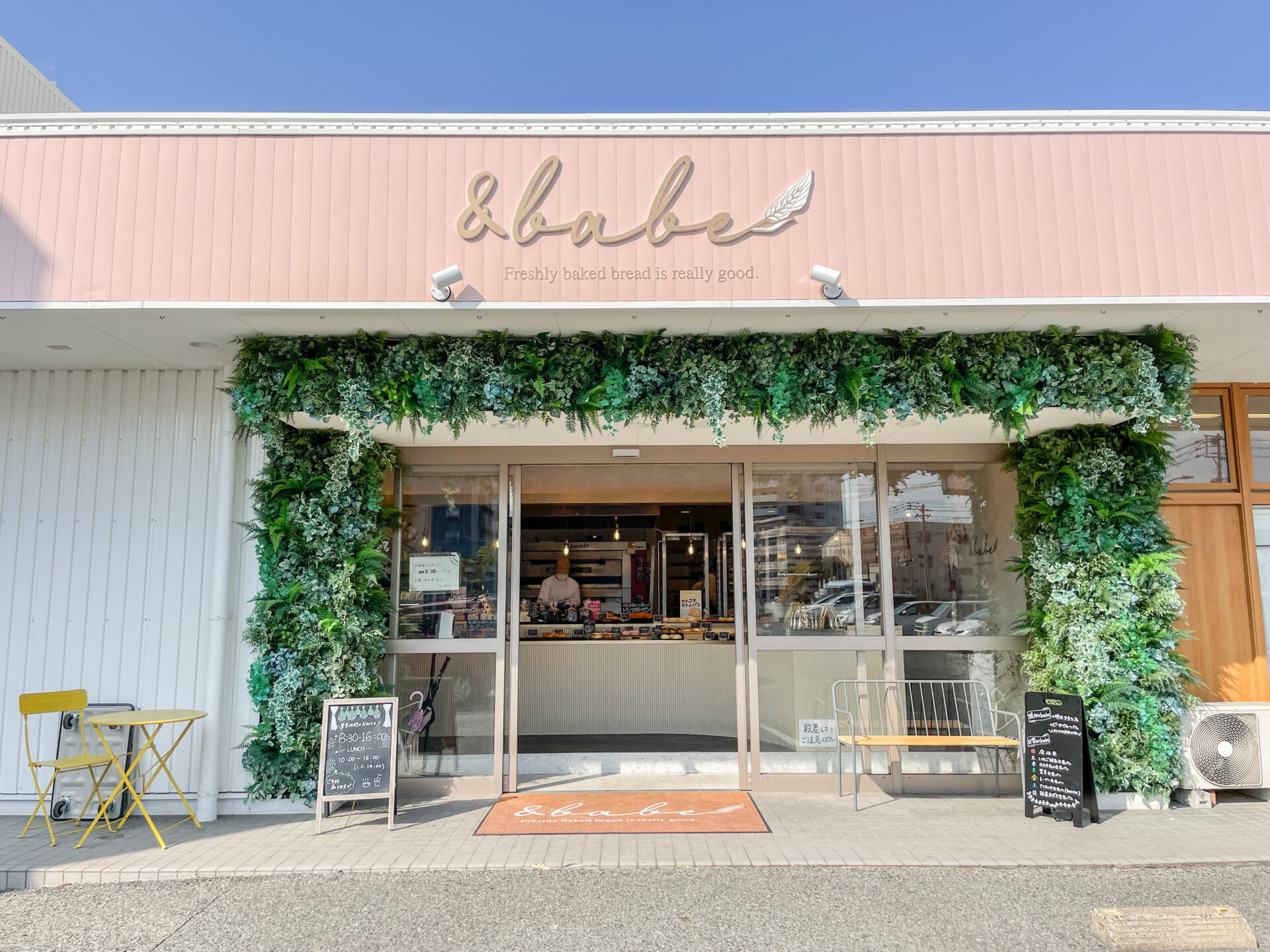 JR折尾駅から車で約7分ほどの場所、北九州市八幡西区浅川に店を構える「&babe(アンドベイヴ)」は、日替わり食パンやシンプルなクロワッサン、惣菜パンにサンドイッチなど、60種類に及ぶ豊富な種類のパンを取り揃えており、パン好きを楽しませてくれる店です。
