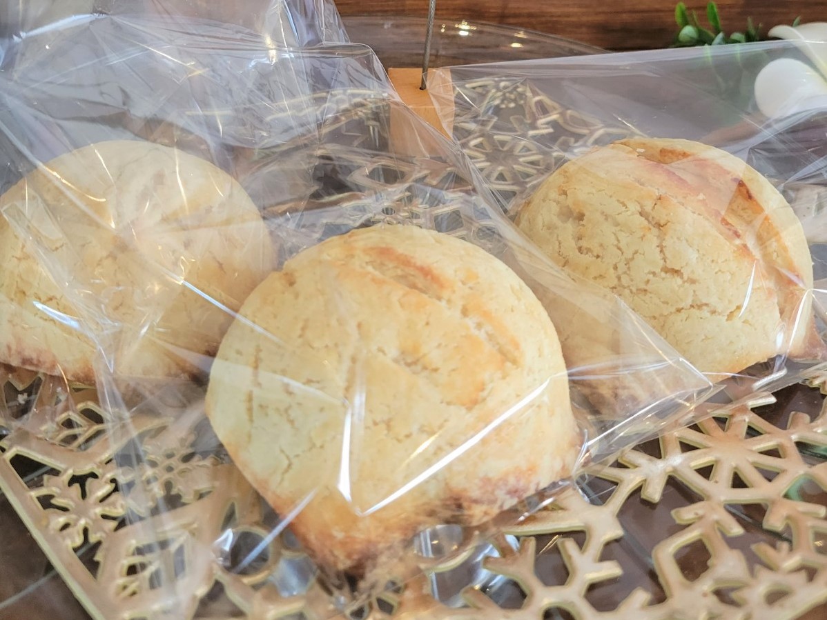その他にも、水の代わりにワインで生地をこね、くるみとクランベリーを練り込んで焼き上げたパンにクリームチーズを挟んだ「ワインパンとクリームチーズ」、果物酵母をじっくり3日間発酵させて焼いたスコーンとチーズケーキの相性抜群の「酵母スコーン チーズケーキ」、北海道産小豆と栗のクリームたっぷりの「栗のクリームとあんこ」など、定番・季節限定商品合わせ、20種類ほどが店頭に並びますが、少量生産のため、午前中でほとんどの商品が売り切れてしまうことが多いそう。