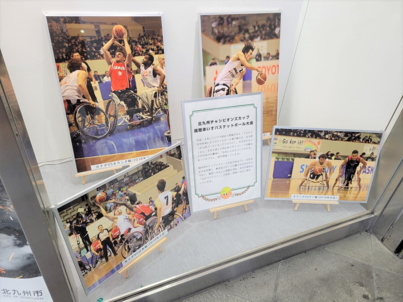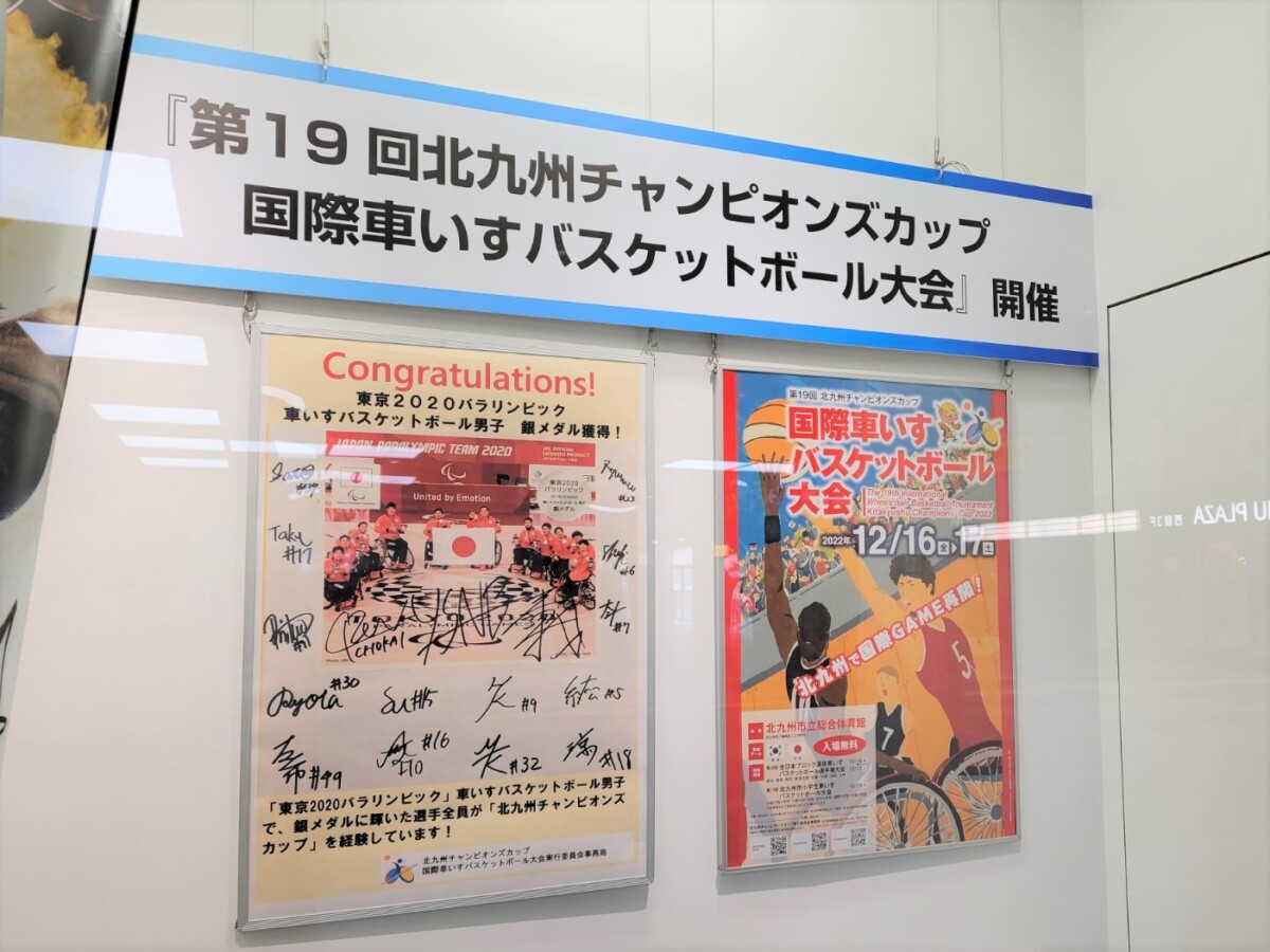 また、例年強豪国が来日し、熱戦が繰り広げられる「北九州チャンピオンズカップ国際車いすバスケットボール大会」の関連では、写真パネルや選手のサイン入りパネルなどが展示されています。