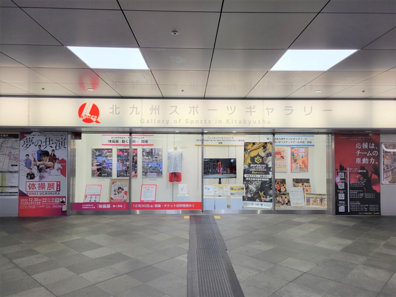 JR小倉駅3階南側に開設された、国際スポーツ大会などの記念品を展示する「北九州スポーツギャラリー」。11月22日から新しい展示内容へ替わりました。