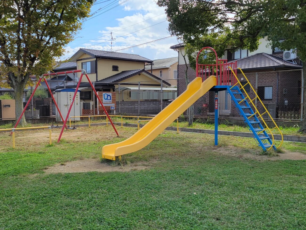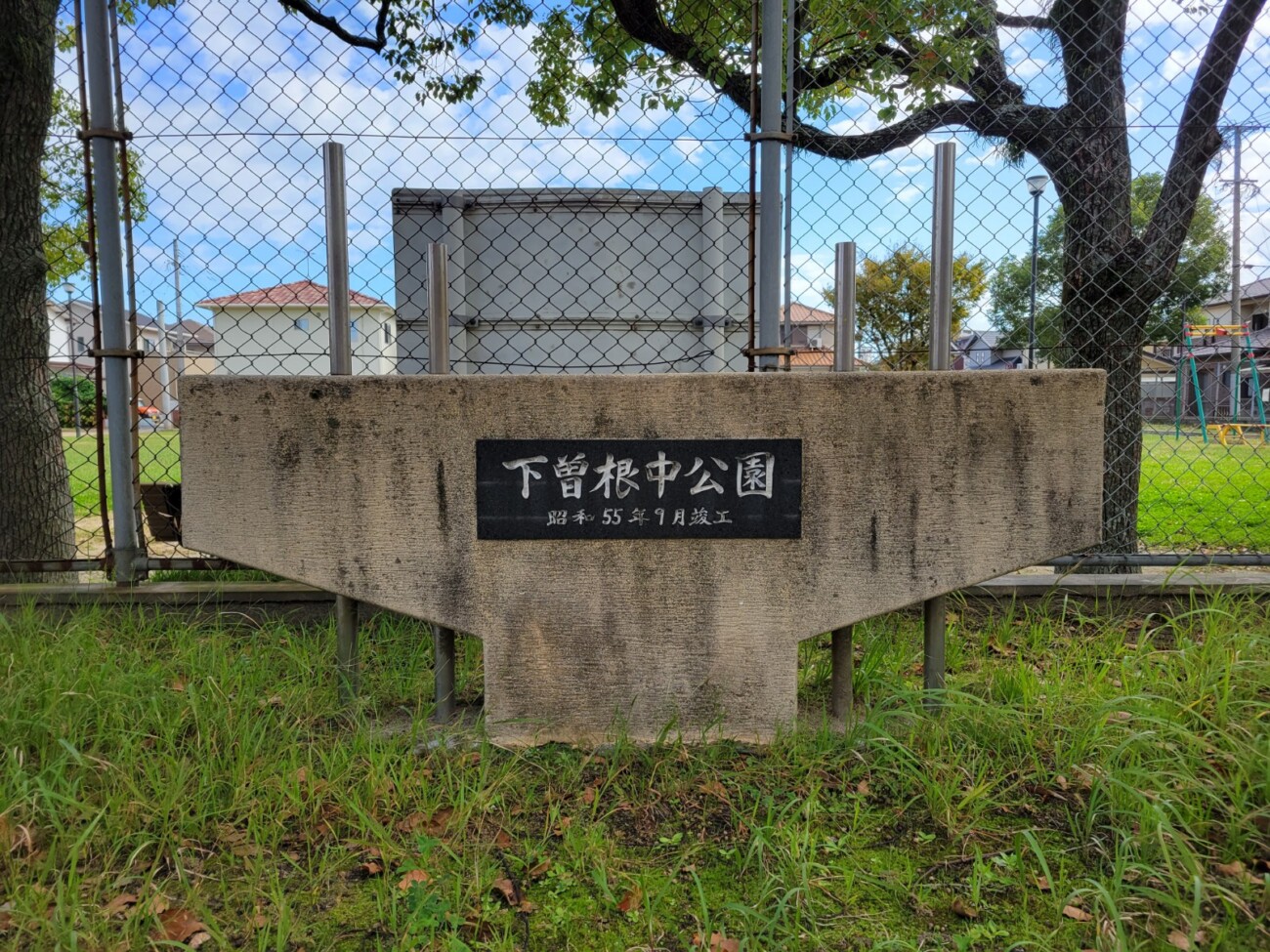 JR下曽根駅から歩いて3分ほどの「下曽根中公園」。住宅地の中にある、のんびりとした雰囲気の公園です。