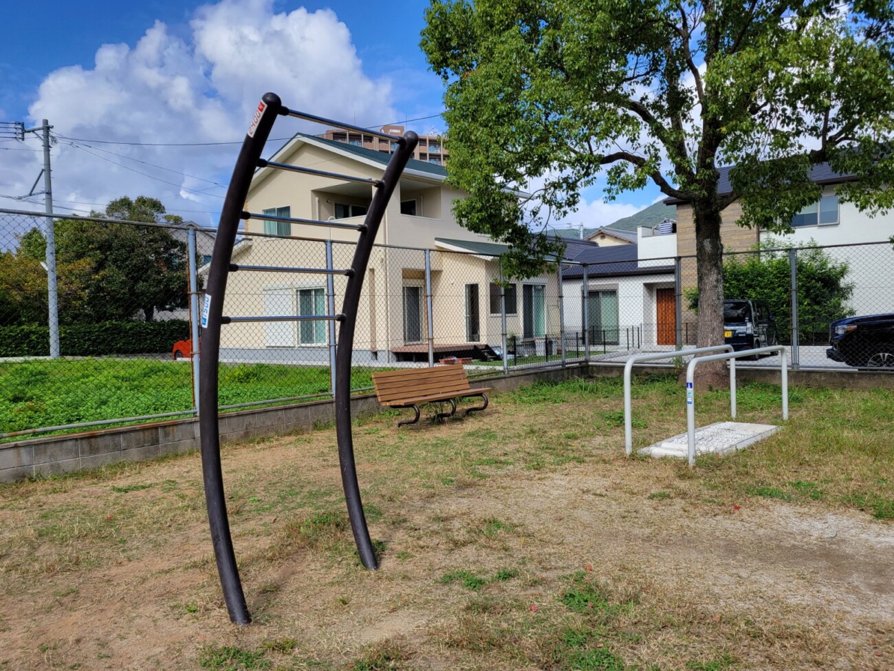 健康遊具やベンチがある一角には鉄棒もありましたよ。