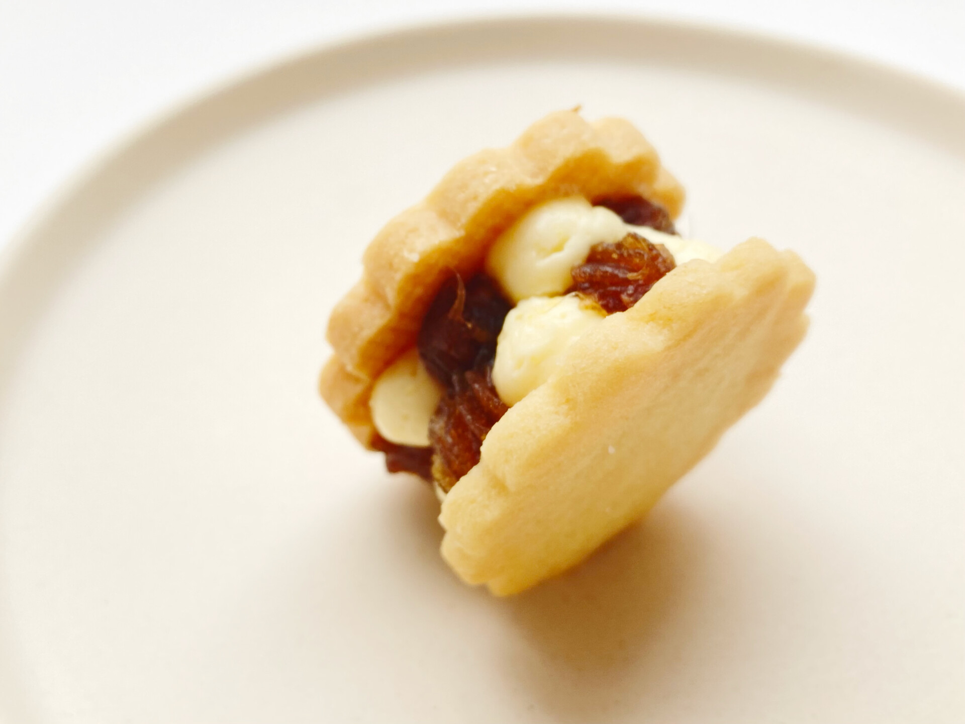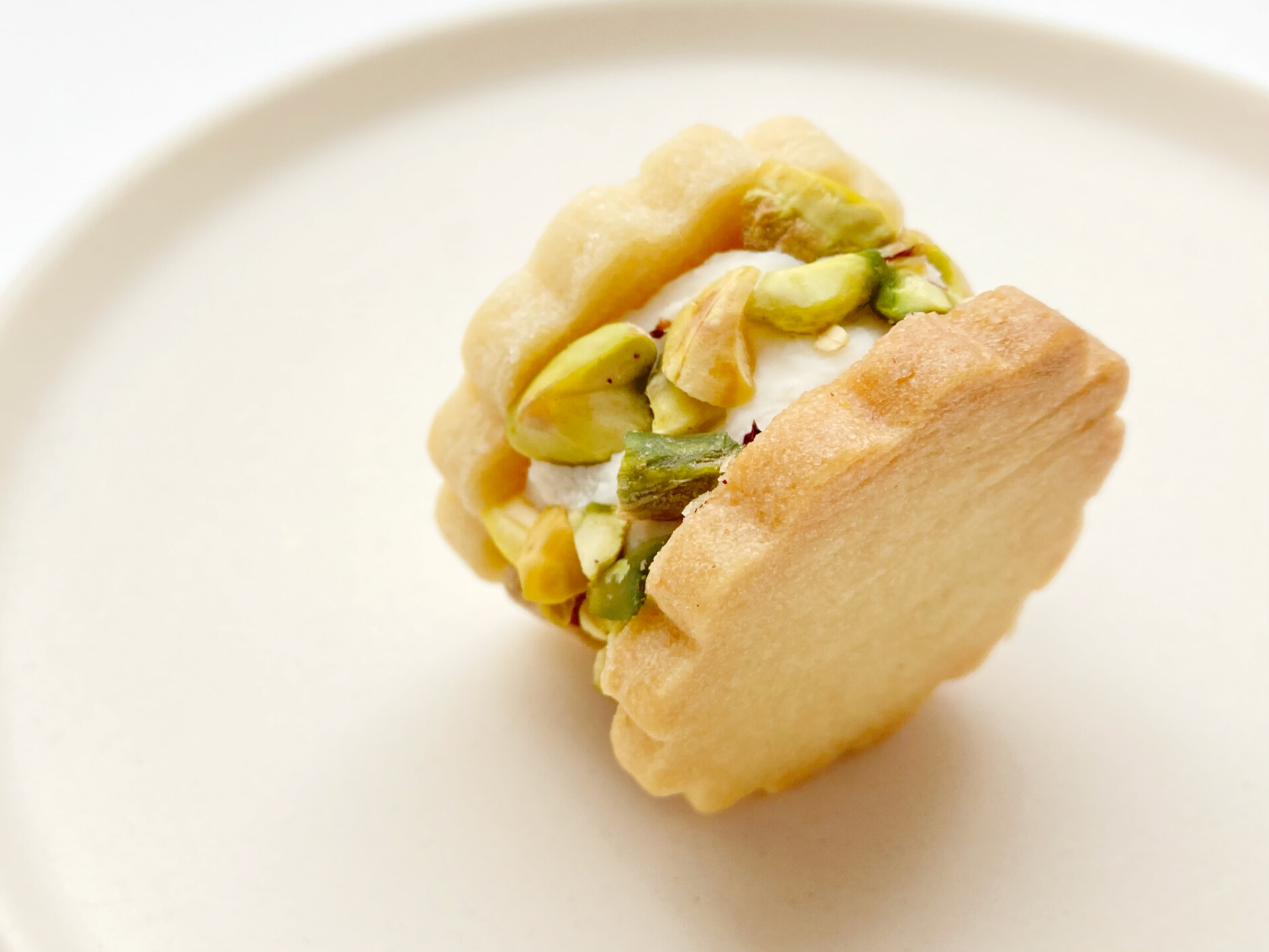 「W butter sand」のフレーバーは「デーツバター」と「ピスタチオフロマージュ」の2種類。どちらも甘さは控えめで、ほんのり感じられる塩味がクセになる味わいです。