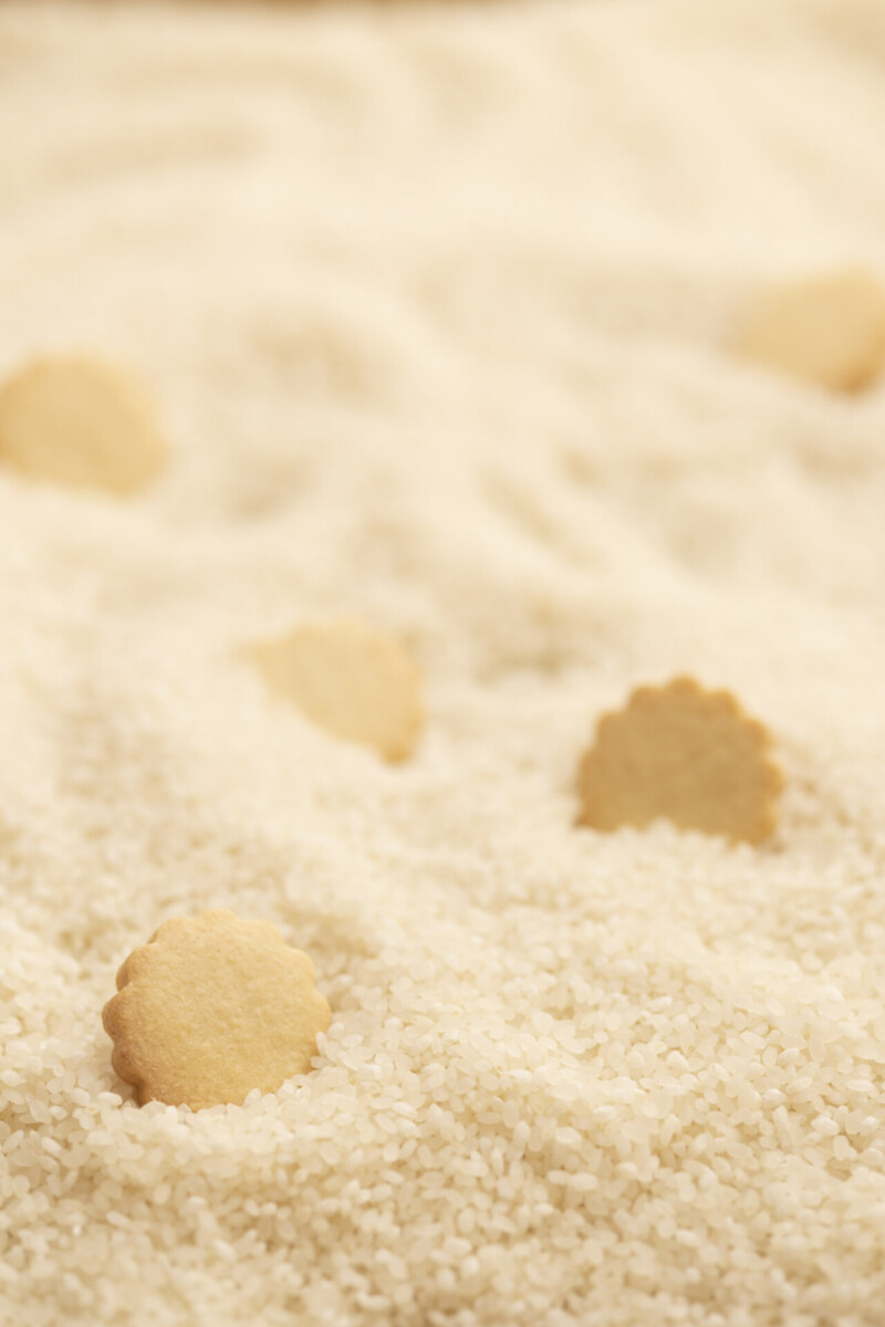そんな収穫量が少なく貴重な「井手浦米」をクッキー製造直前に自家粉砕。あえて粒を均等にせず、噛み締めたときにプチプチとした食感と、バターの芳醇な香りの中にも、ほのかにお米の香りを感じられるよう趣向を凝らしています。