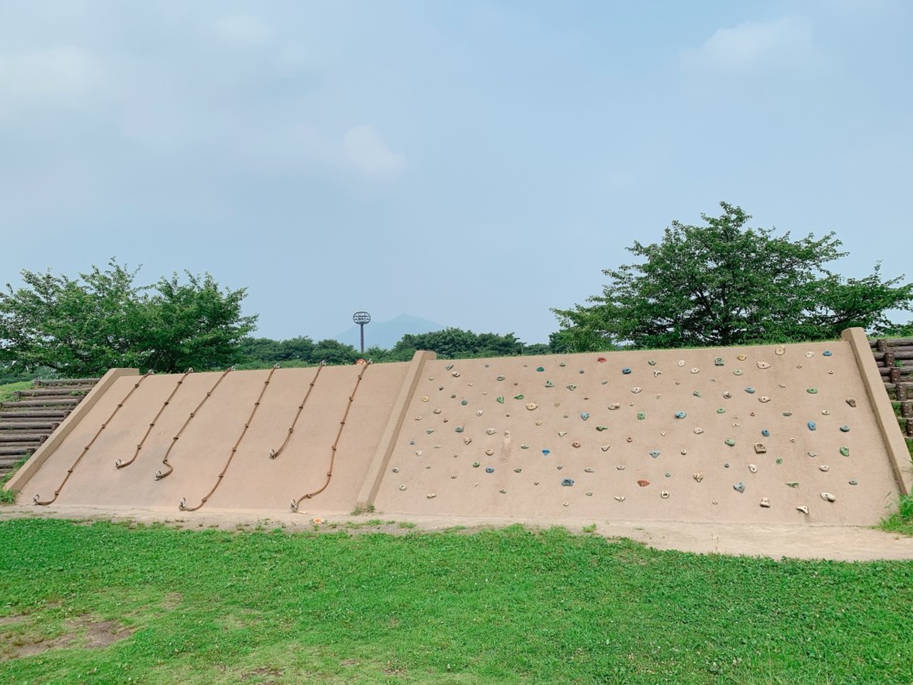 中でも、ボルタリングウォールと、ロープをつたって登れる壁は、子どものチャレンジ精神をくすぐります。小高い丘へ登ると、公園全体やその横を流れる川を見渡すことができます。