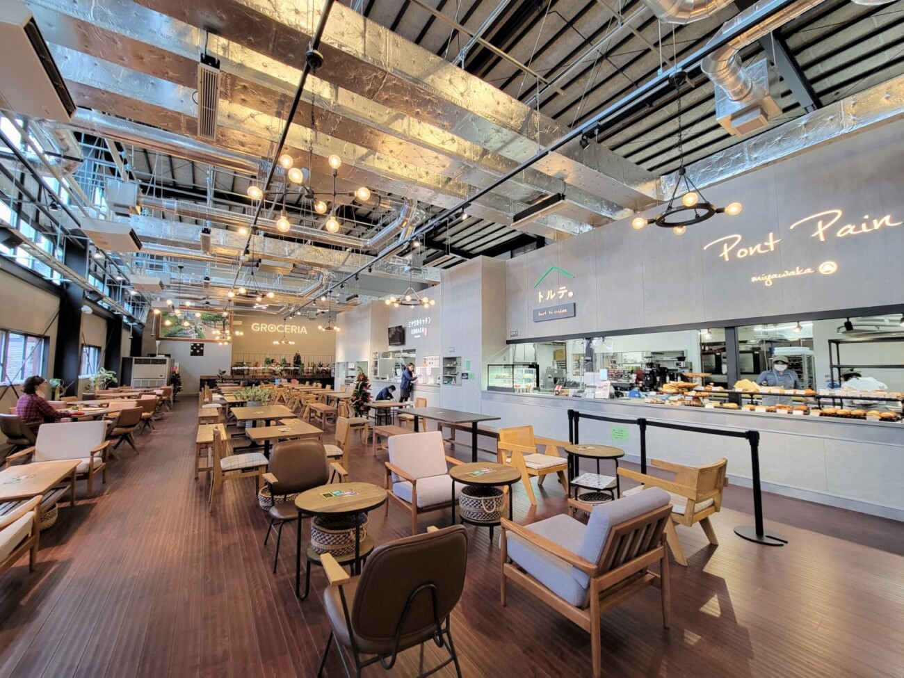 2022年4月20日にグランドオープンした「GROCERIA(グロッサリア)脇田店」。旧吉川小学校の体育館を改装した、フードコートスタイルの地産地消レストランです。「生産者と地域の皆さまをおいしい料理で結ぶことができたら」という想いから誕生したという同施設。レストラン「ミヤワカキッチンKOHAKU」、ベーカリー「Pont Pain(ポンパン)」、スイーツカフェ「ヤマトルテ」の3軒で、宮若市の地元食材などを使用した地産地消グルメが楽しめます。