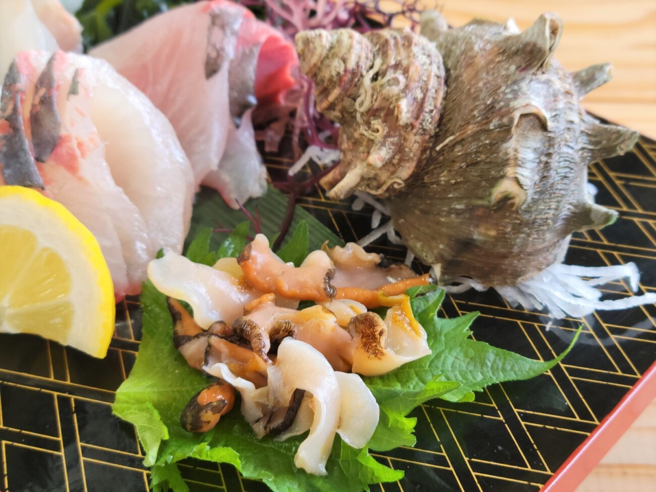 その中でも特に注目したいのが『サザエ』。「妙見かき小屋」のすぐそばに広がる脇之浦で収穫されたものです。身を細かく切ったサザエの刺身は、磯の香りとコリコリとした歯応えがたまりません。まさに地元の海の幸といえるサザエは店内に入ってすぐの生簀でも販売されており、海鮮バーベキューでも楽しめるとのことです。