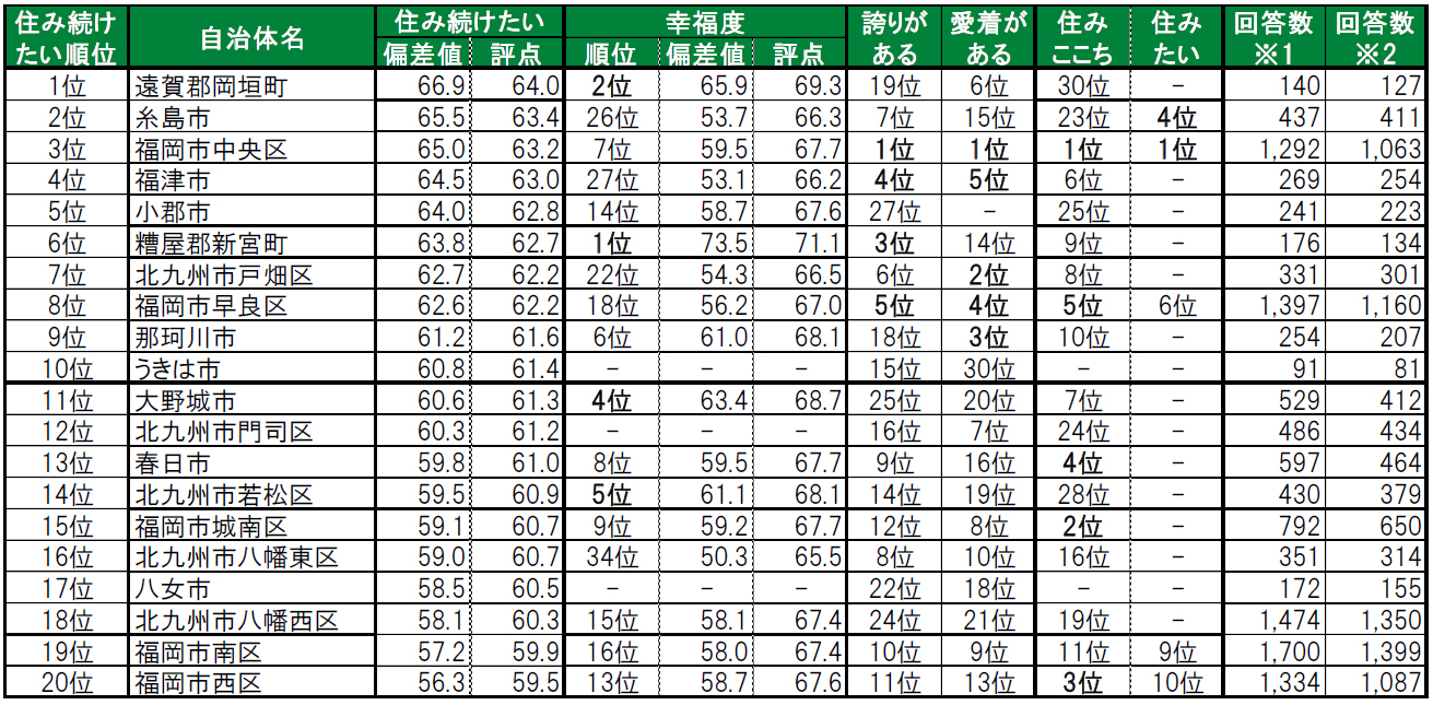 ※出典:「街の幸福度&住み続けたい街ランキング2022<福岡県版>」