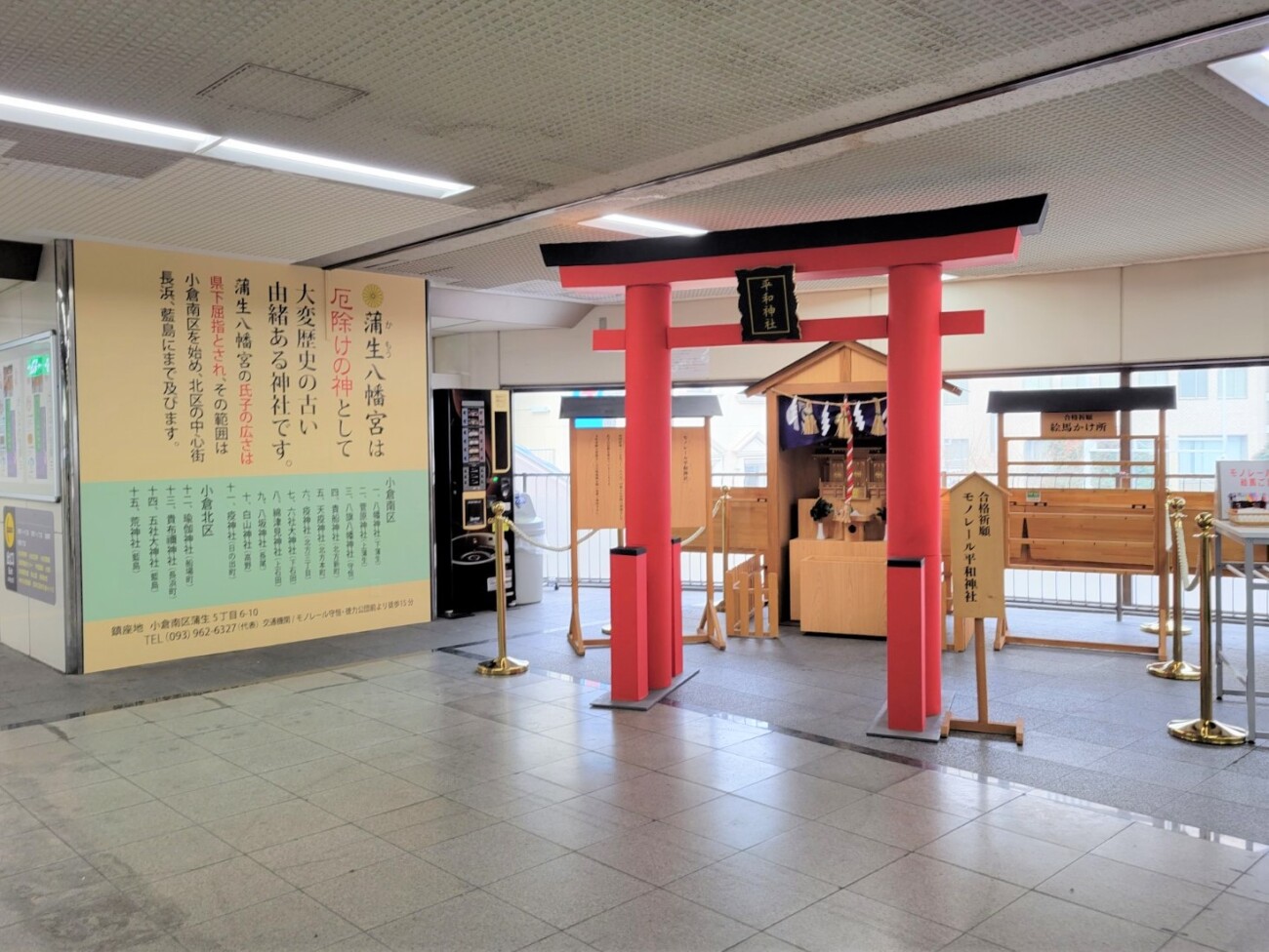 12月27日から、北九州モノレール「平和通駅」北口コンコースに「モノレール平和神社」が登場しています。
